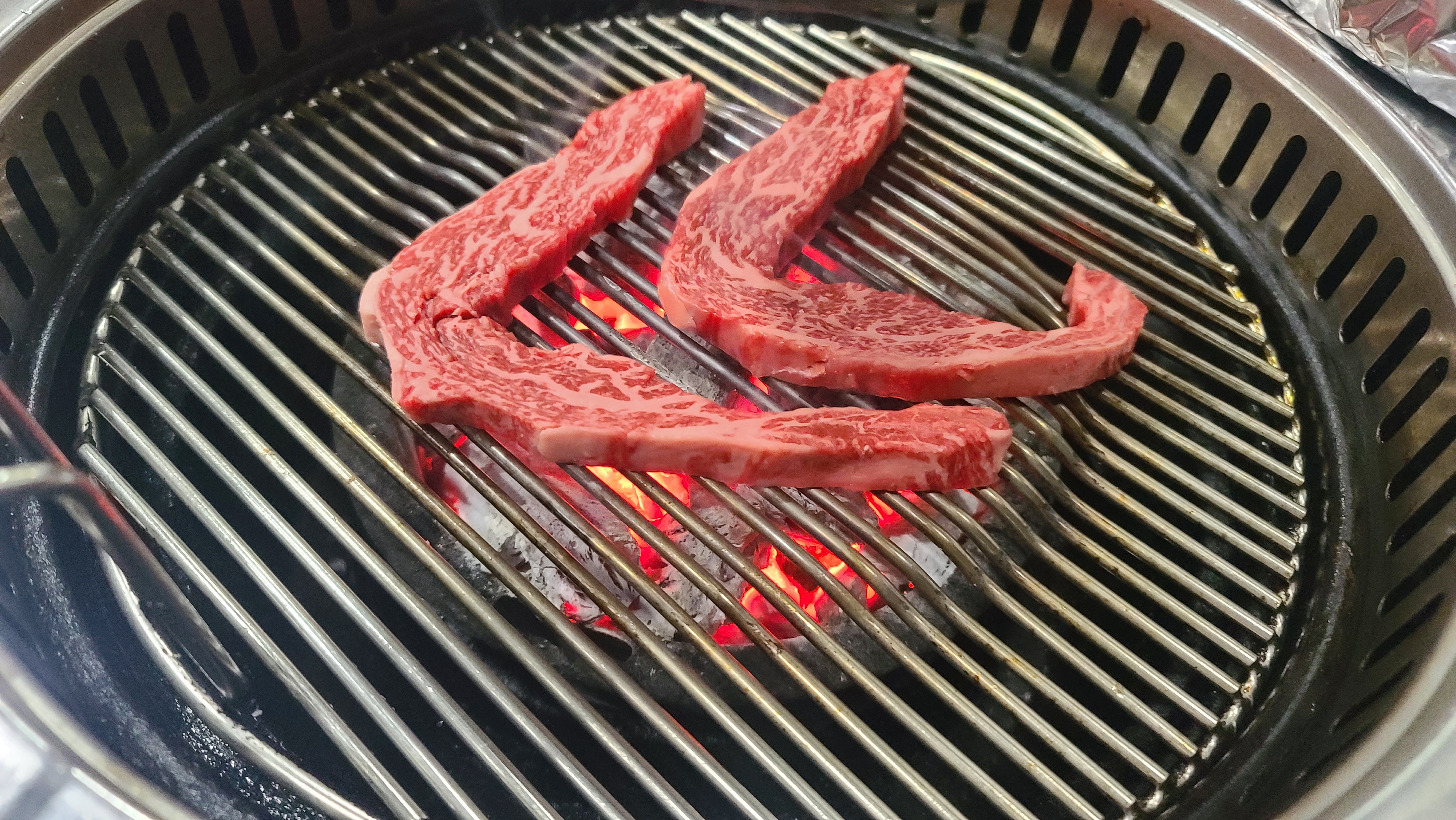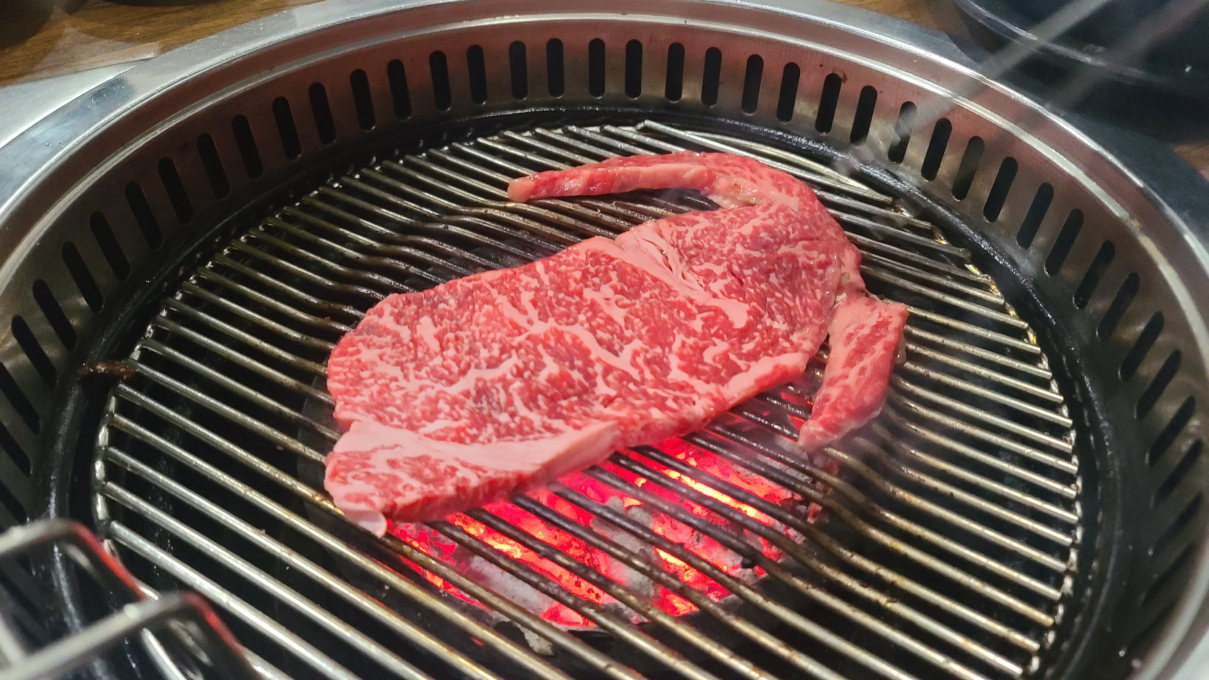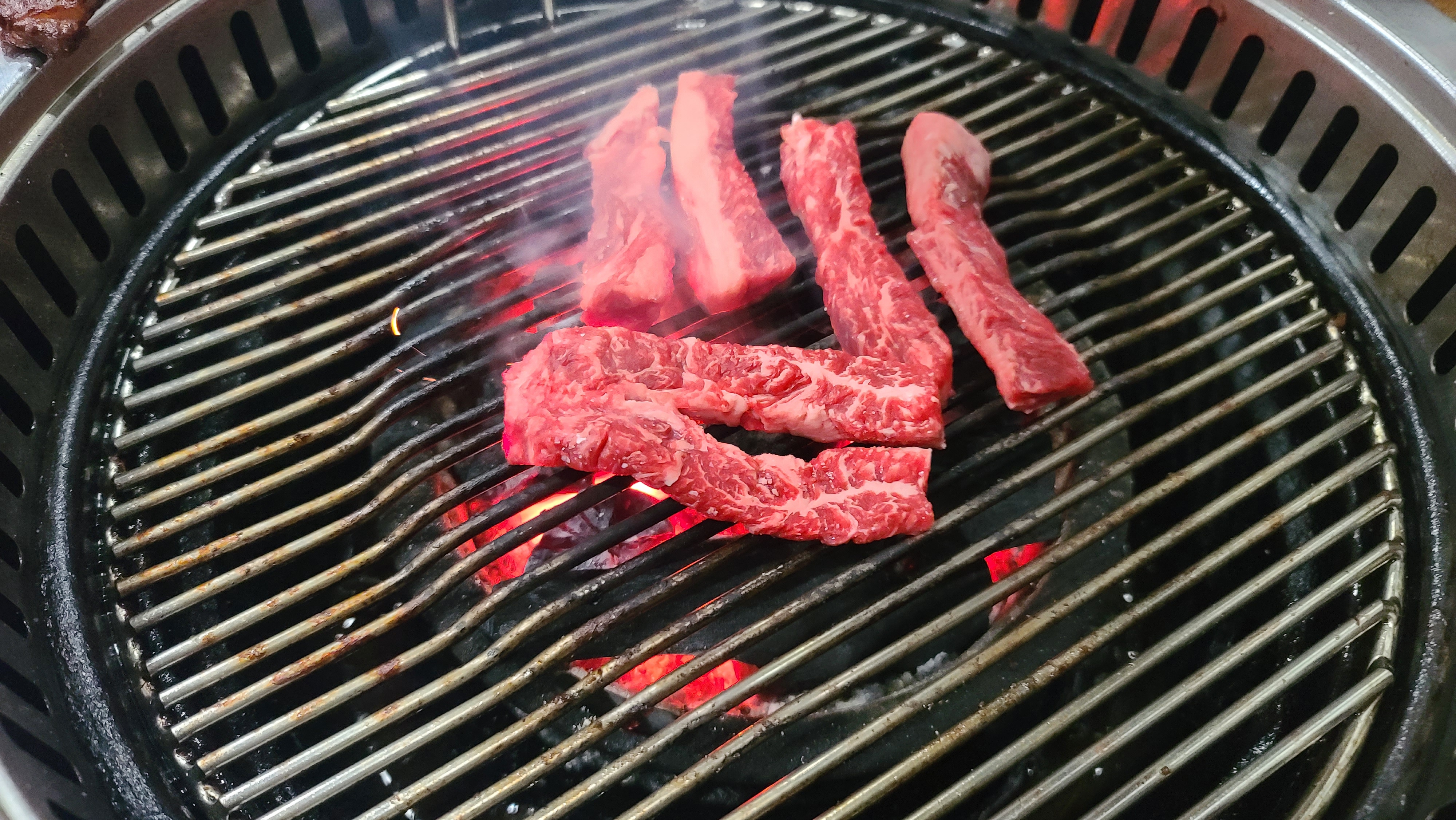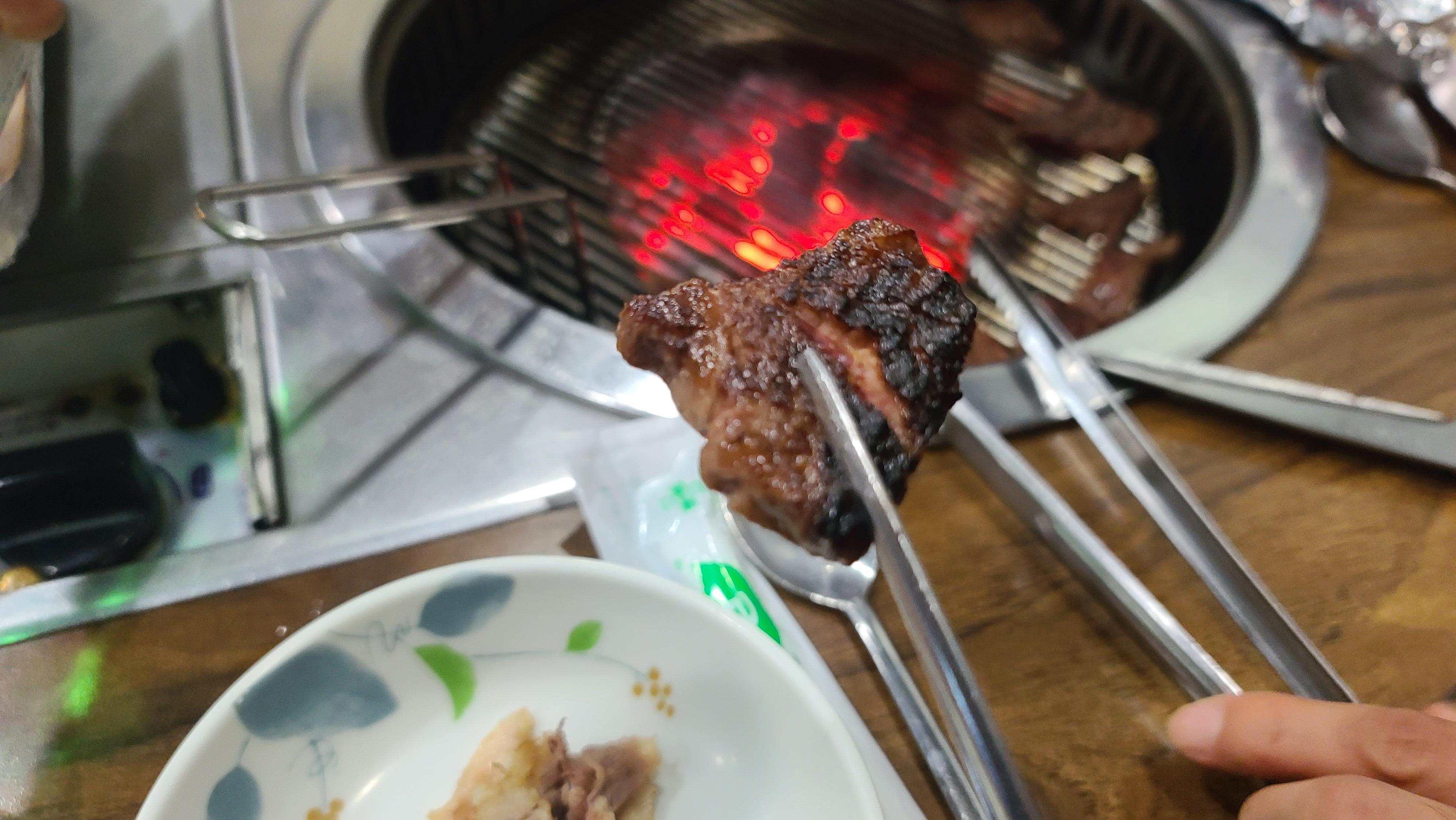어느새 여러 소고기 부위를 거의 먹어가고 피날레로 생갈비살을 맛보게 됩니다. 신선하지 않으면 맛을 제대로 느끼기 힘든 생갈비의 탄력과 촉촉함이 입안 가득 퍼지며 한우맛의 정점을 보여주고 훌륭한 식사를 마무리하게 됩니다.