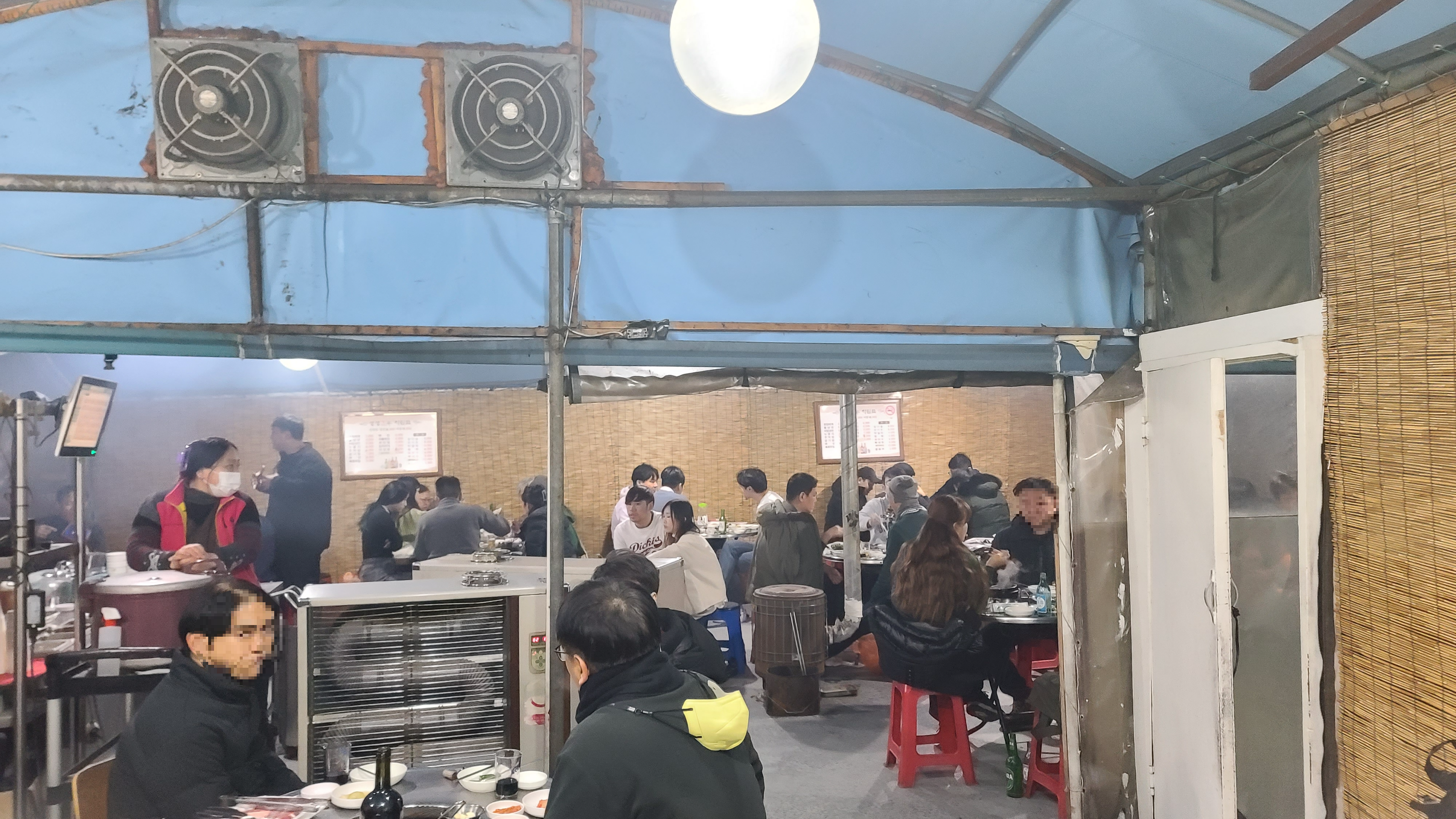 가장 번화한 인생한우를 가볼까하다가 명색이 올바른 정보를 전달하는 주류, 맛집 전문 블로거가 남들 다 가는데만 갈 수는 없는 법 탐험 정신을 발휘하여 여러 가게를 둘러봅니다. 조금 어둡지만 여러가게가 붉을 밝히고 영업하는 것이 신기해서 이것 저것 가격대를 알아봅니다. 살치, 안창, 등심, 새우 등 여러 부위중 인기있는 부위로 4명정도 소고기를 먹을려면 최하 30만원은 줘야 하는 것이 보여 비싸지만 연말이니 질러보기로 합니다.