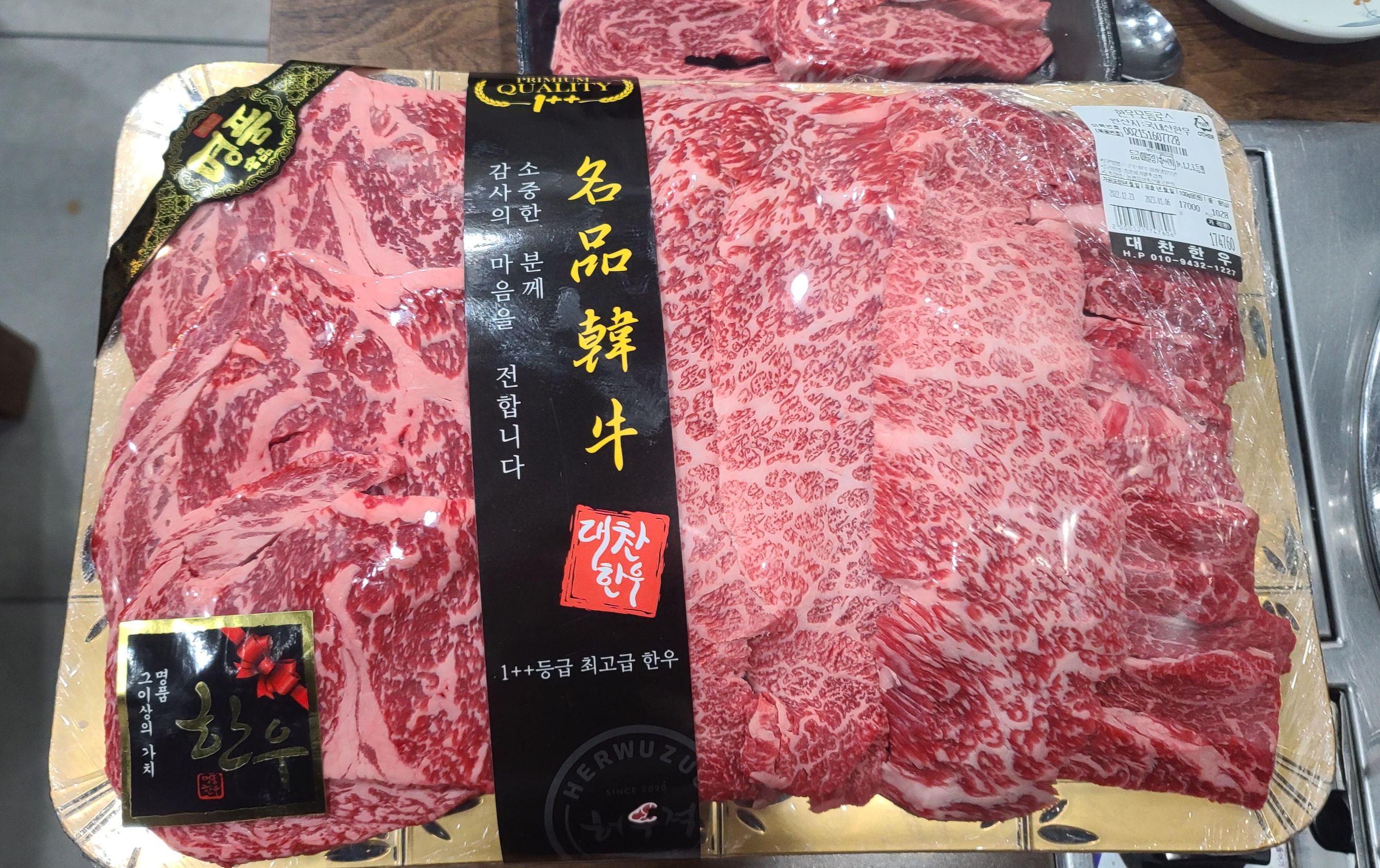 꽃등심과 새우살, 안창 등 1++ 등급으로만 소고기를 주문하고 구워먹겠다고 하니 2층에 매장으로 올라가라고 하십니다. 덤으로 차돌박이를 챙겨주시는 것도 잊지 않으시는 센스를 보니 시장의 인심을 느끼게 됩니다.