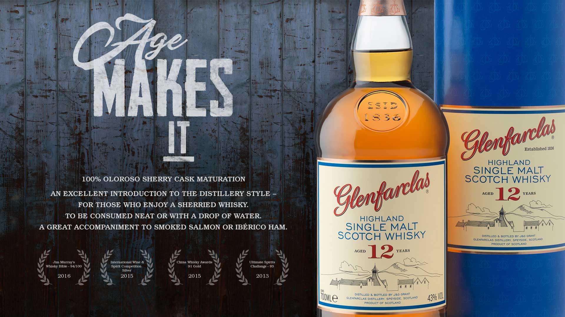 글렌파클라스 12년은 10년 제품과 마찬가지로 100% 올로로소 셰리캐스크를 사용하여 12년간 숙성시킨 제품으로 10년 제품보다 숙성기간이 길어 셰리와인의 원액이 좀더 배어들어 짙은 빛깔과 향을 지닌것이 특색인 제품입니다. IWSC 2015에서 실버메달을 획득이후 2016 위스키바이블에서 94점의 높은 점수로 대중들에게 많이 각인되었으며 쉐리숙성 위스키의 바이블이라 불리우는 제품이기도 합니다.