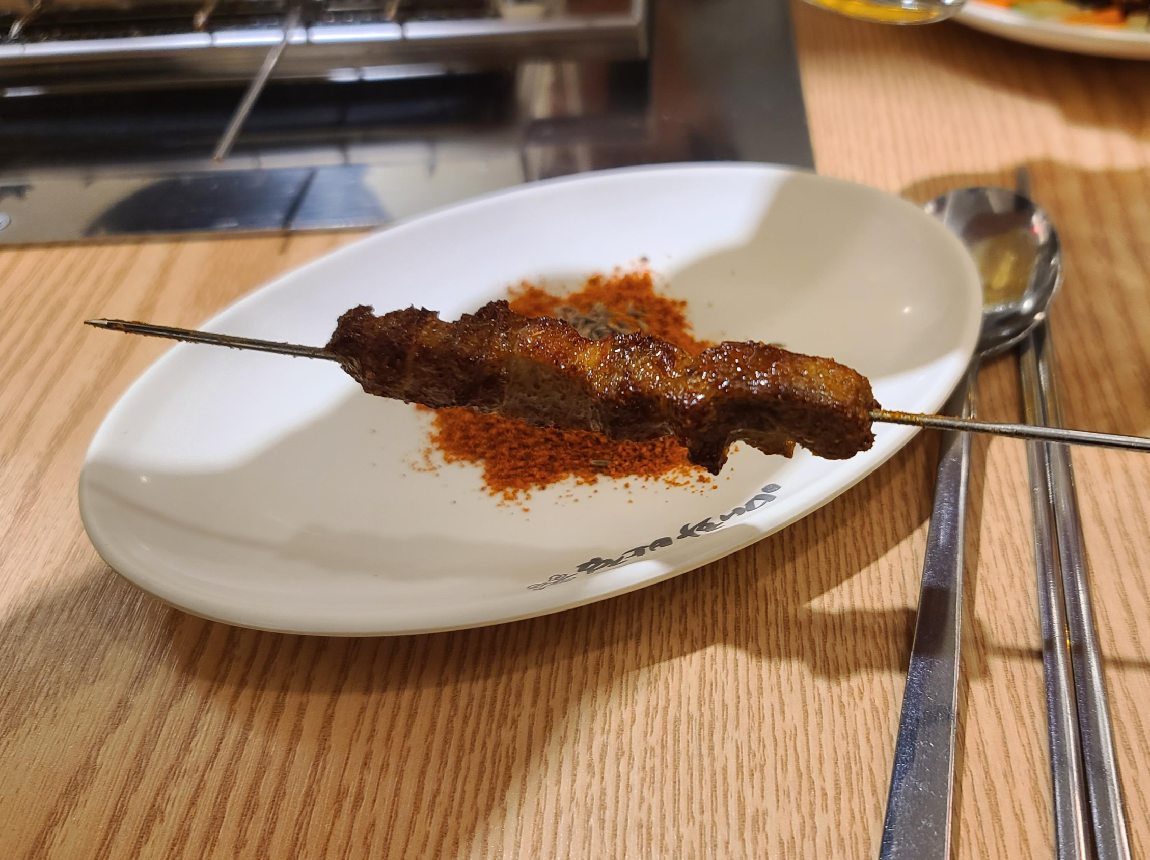 잘익혀진 양꼬치를 시즈닝과 쯔란을 잘 버무려서 찍어 먹어봅니다. 특유의 중화스러우면서도 쯔란의 톡쏘는 향이 어우러져 천상의 맛을 자아냅니다. 다른 양꼬치집에서는 쯔란을 취급하지 않는 경우도 있는데 역시 중국인이 하는 전문점이라서 중국 특유의 향이 더욱 강렬한 것을 느낄 수가 있습니다.