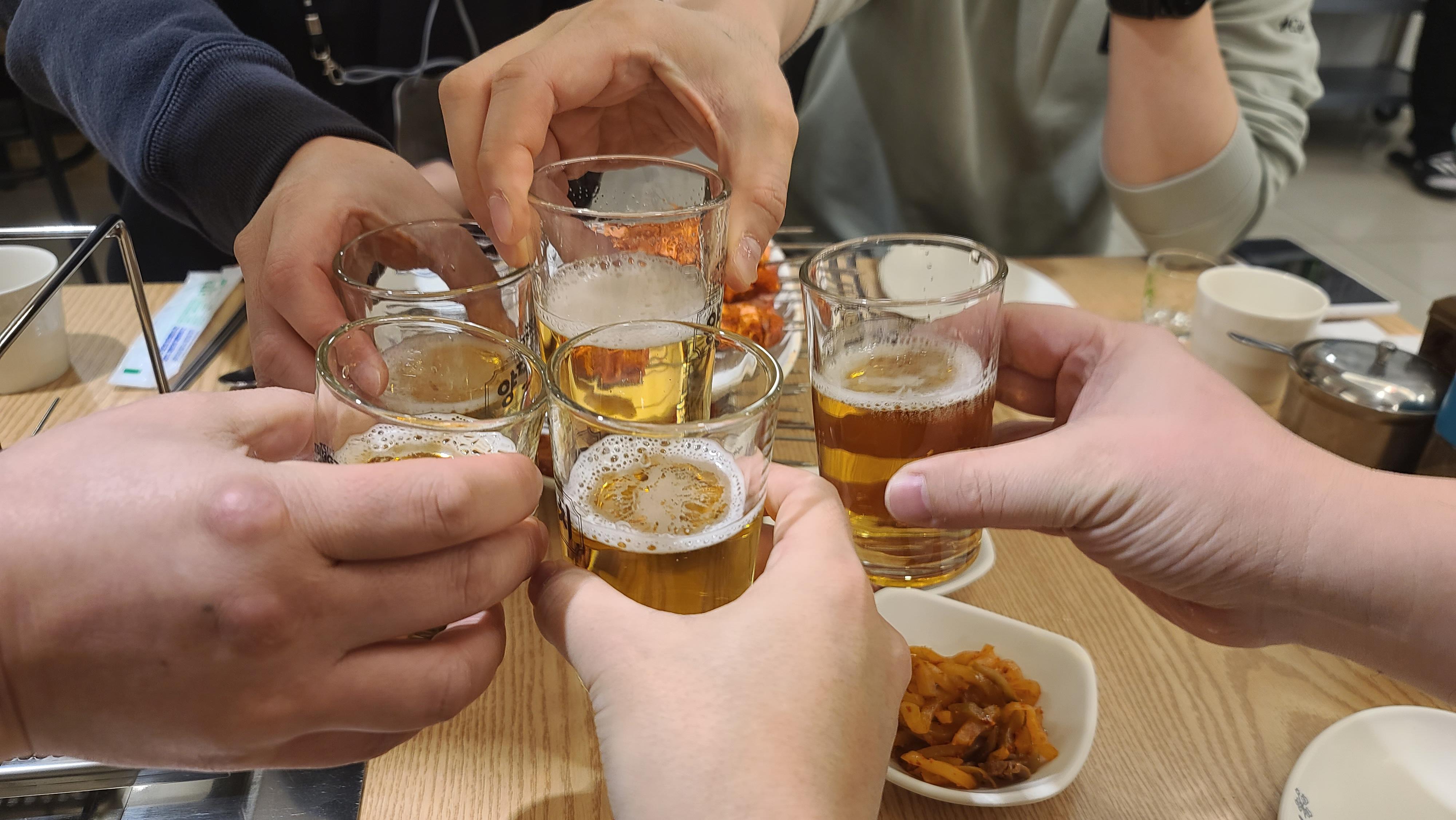 오랜만에 친구들과 만난 자리 장소도 좋고 추억도 좋고 사람도 좋고 건배를 하고 잔을 기울이며 예전 추억들을 이야기하기 시작합니다. 대학가앞에서 친구들과 추억이야기라니 술이 저절로 들어갈 수 밖에 없습니다.