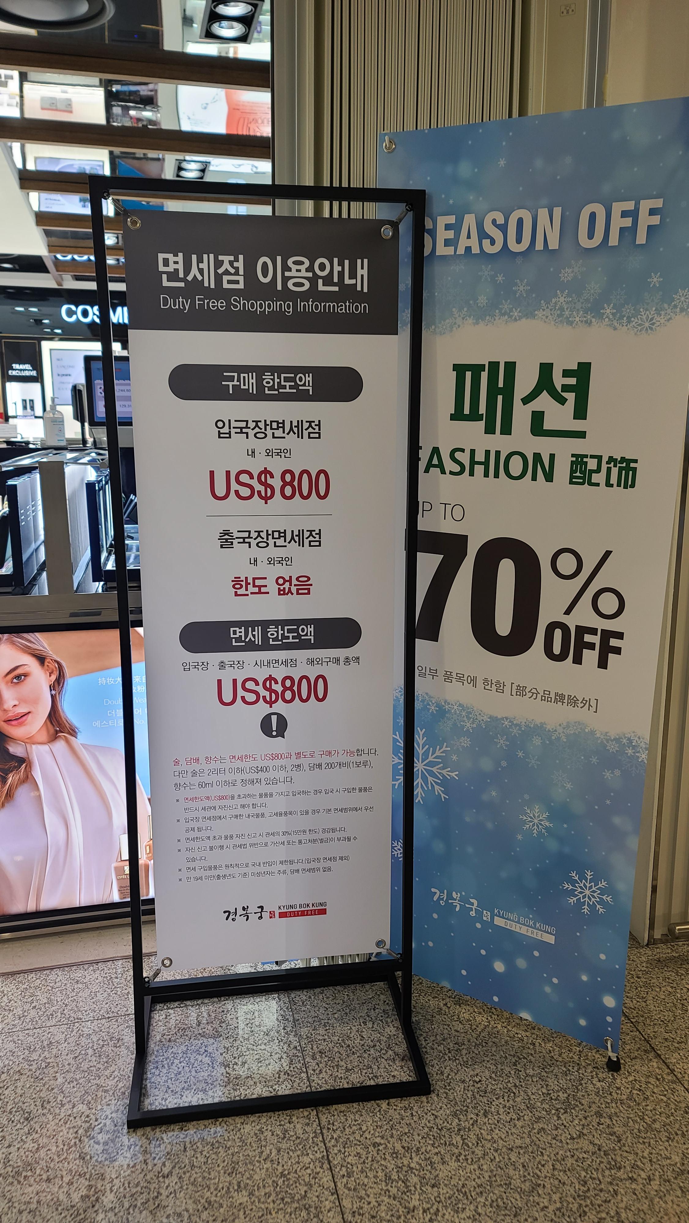 입국장 면세점의 가장 큰 특징은 바로 구매 한도가 작다는 것입니다. 입국장 면세점의 구매한도는 800달러로서 출국장 면세점의 구매한도가 없는것에 비교하여 한도가 적은것을 알수가 있으며 이는 입국장 면세점 물품은 국내에 유통이 되는 특성상 한도를 정해놓은 것으로 볼 수가 있습니다.