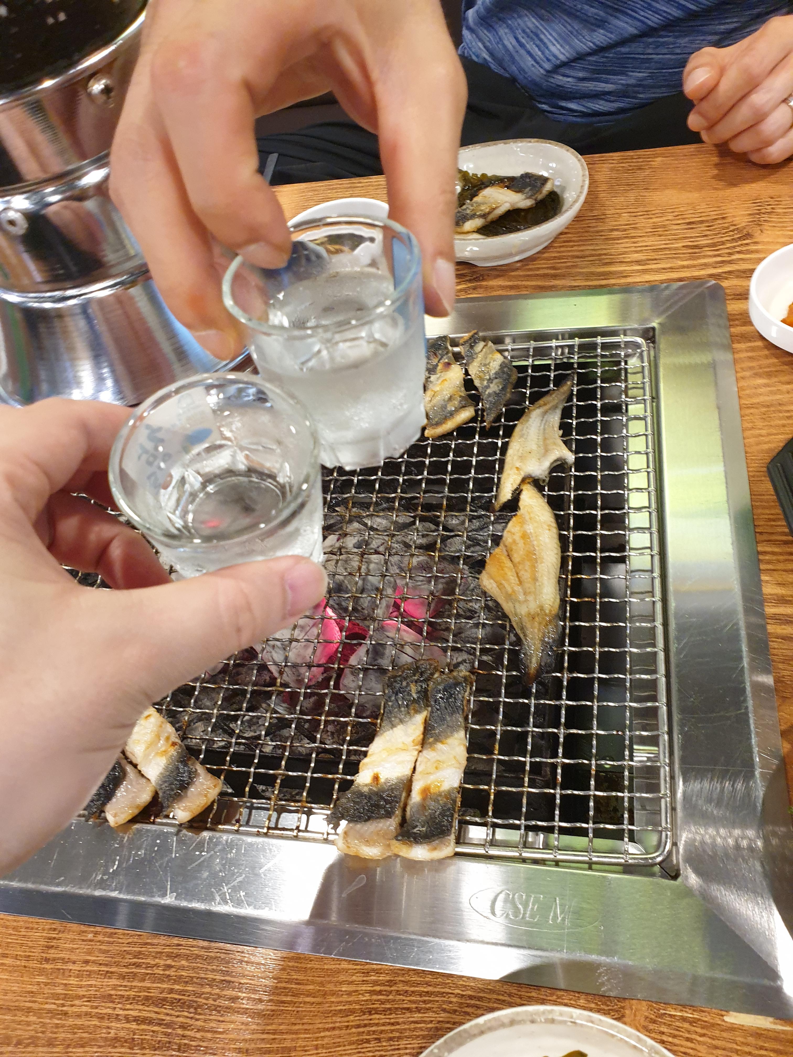 이런 장어를 먹을때는 술이 빠질수가 없습니다. 소주를 선택하여 장어의 기름기가 쌓였다고 생각될때마다 깨끗하게 씻어주며 맛을 새롭게 합니다.