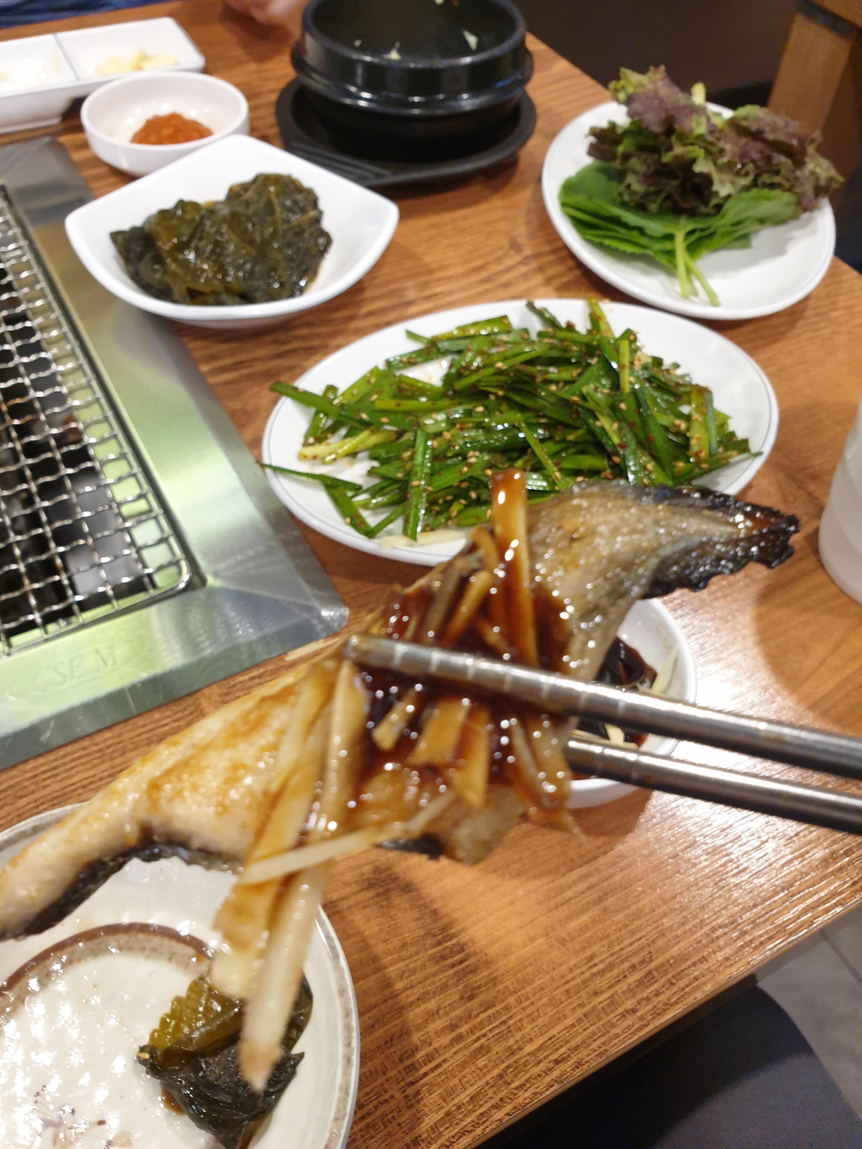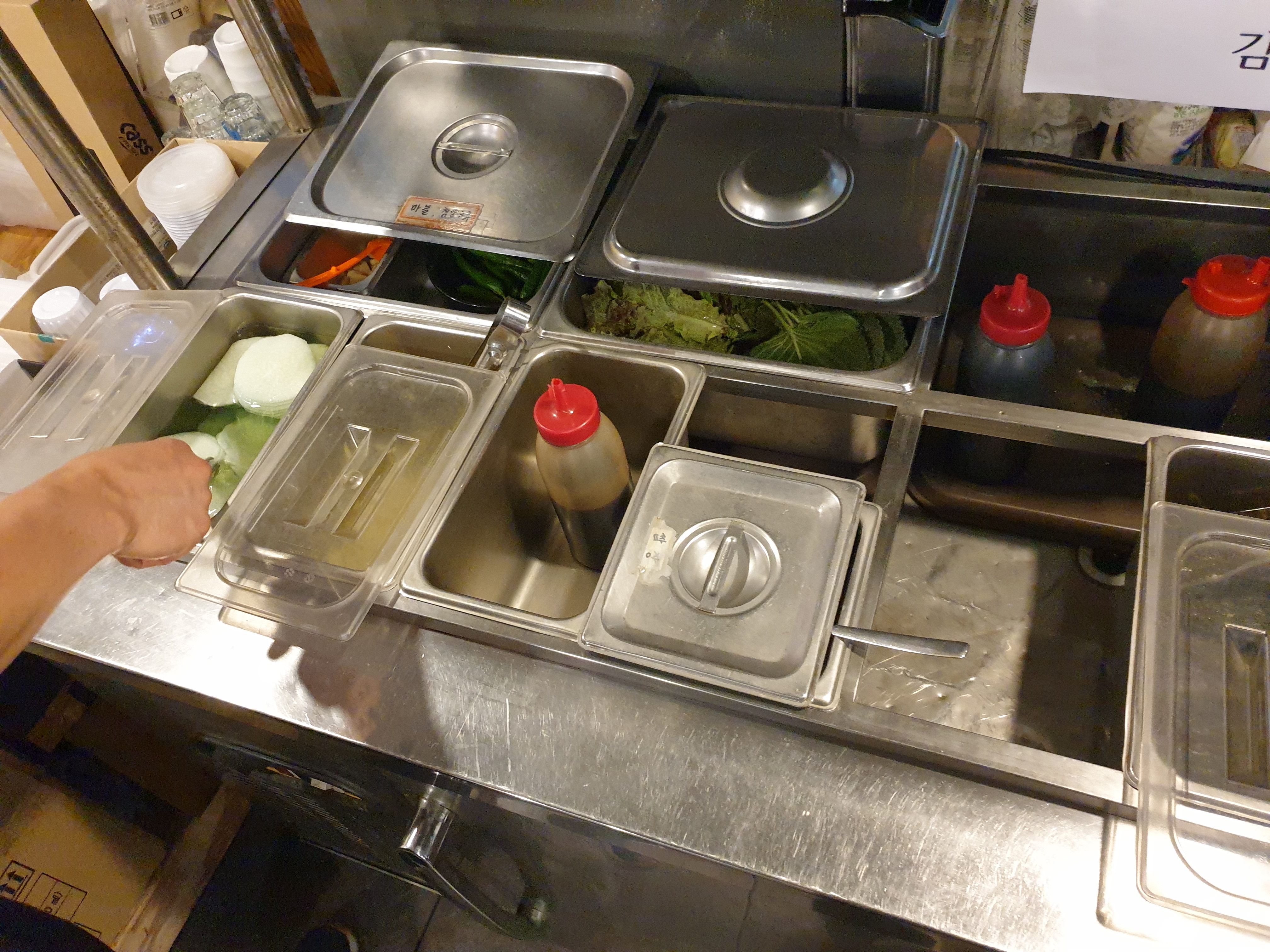 반찬을 많이 먹었더니 금새 떨어졌습니다. 셀프바가 있으니 가서 구경을 합니다. 고추, 상추, 깻잎, 소스, 무, 그리고 밥과 국까지 기본적으로 안나오는 반찬들도 있으니 초반부터 들려야합니다.