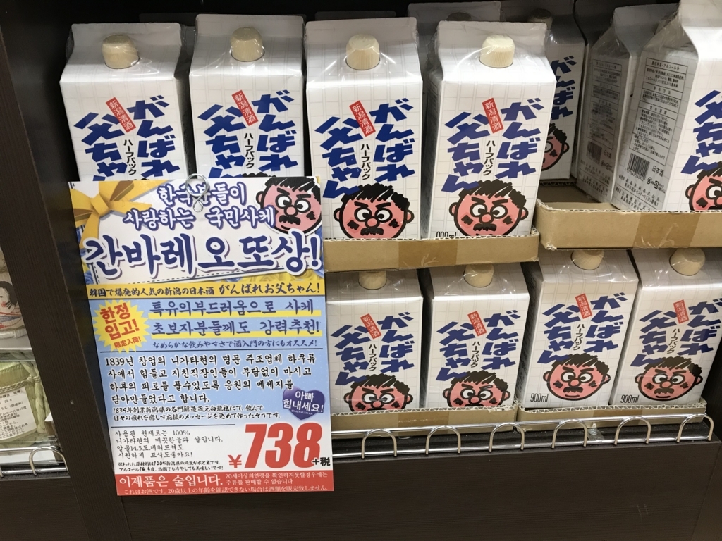 니가타현의 여러 사케 중 하나인 간바레오또상은 국내 주류기업인 태산주류가 수입하여 국내사케주류시장에 뛰어들었으며, 매우 저렴한 가격과 대용량으로 국내 이자카야 및 여러 술집에서 선풍적인 인기를 끌며 시장에 안착 및 대히트를 치게 된 제품인 것입니다.