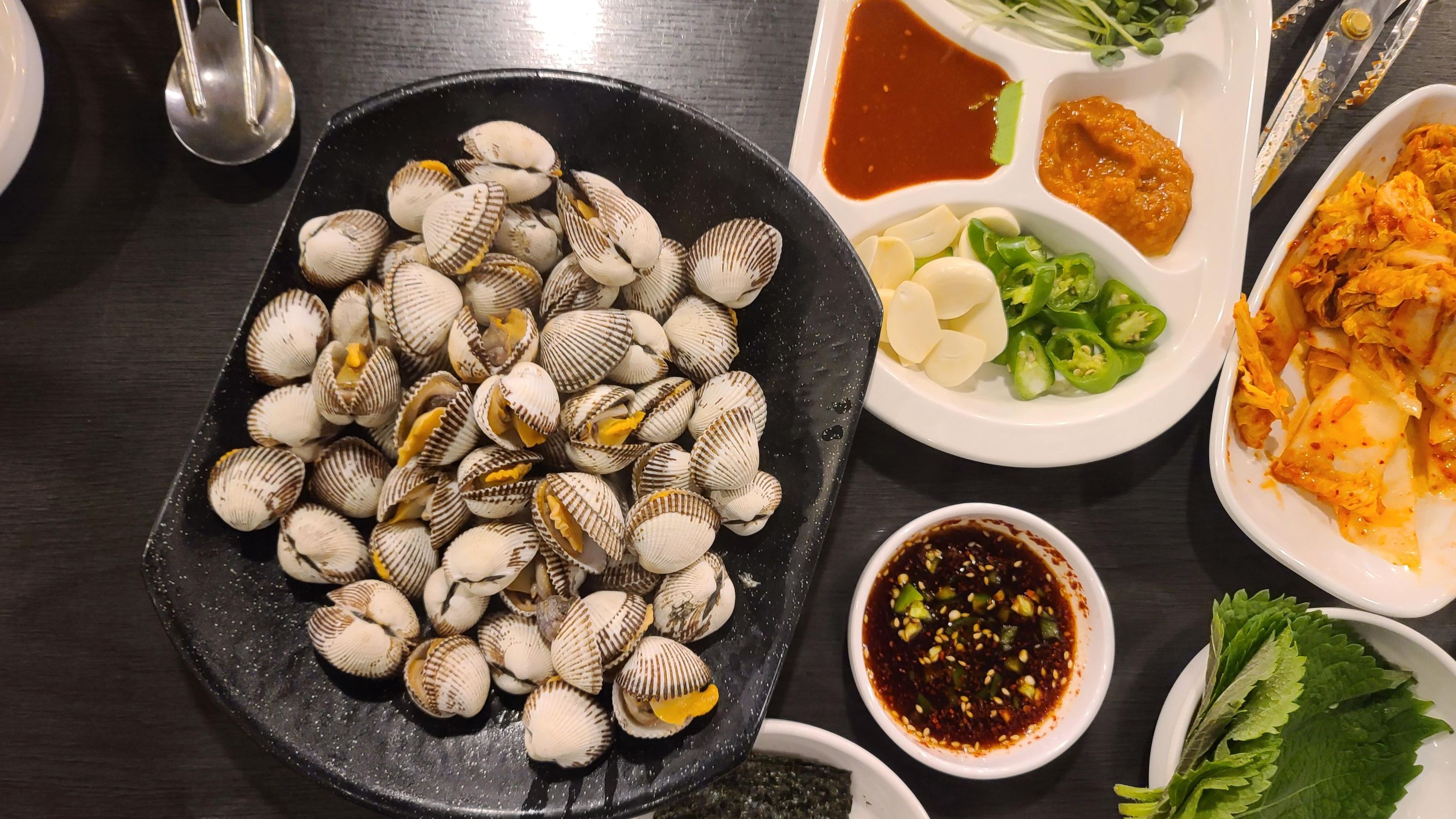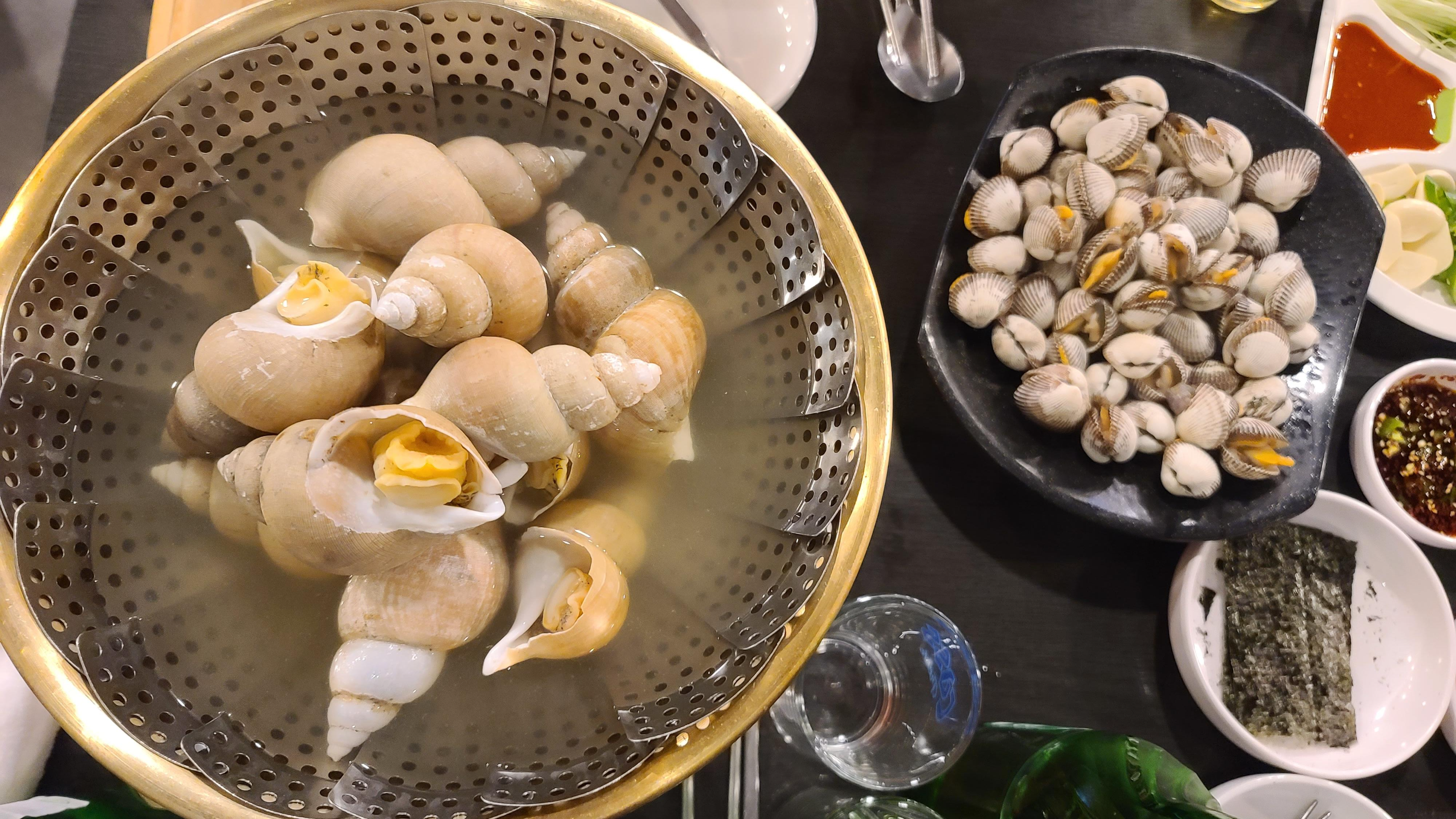 뒤를이어 꼬막이 나왔습니다. 겨울철에 꼭 맛을봐야하는 별미로서 조리상태를 자세히 살펴보니 입이 너무 벌어져있고 많이 삶아진 모습입니다. 맛을봐도 육즙이 많이 빠져나가 안타까운 조리이지만 골뱅이 전문점이니 골뱅이에 기대를 걸어보기로 합니다.