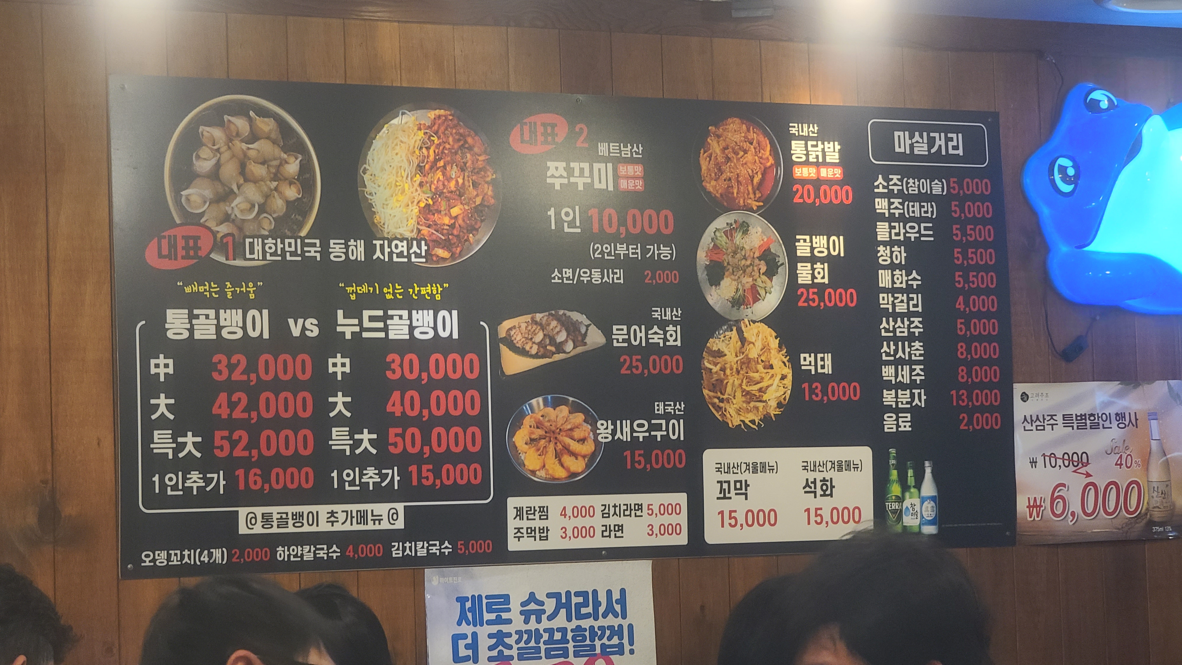 메뉴를 살펴봅니다. 골뱅이 전문점이라 무침이냐 탕이냐를 선택해야하는 중대기로에 있습니다. 겨울이라 따뜻한 국물이 생각나니 골뱅이탕에 겨울철의 별미 꼬막을 주문하고 기다려봅니다.