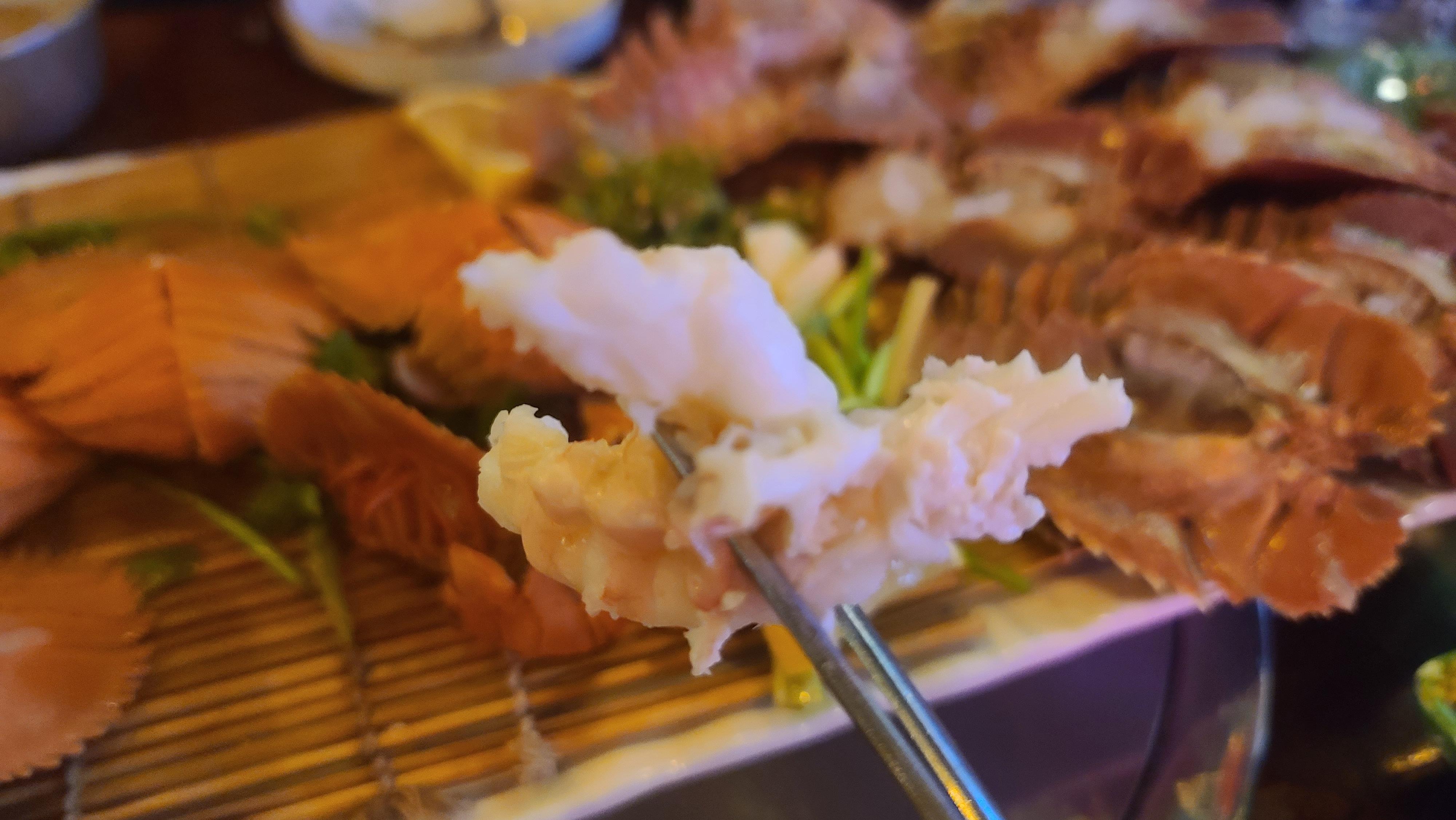 드디어 오늘의 메인 부채새우가 나왔습니다. 반은 찜으로 따뜻하게 반은 회로 신선하게 즐기는 코스입니다. 찜으로 먹었을때의 달콤 촉촉한 맛과 생으로 먹었을때의 탄력과 신선함을 모두 느낄 수 있는 부채새우의 모든 것을 맛보는 최고의 메뉴선택이라고 생각되는 순간입니다.