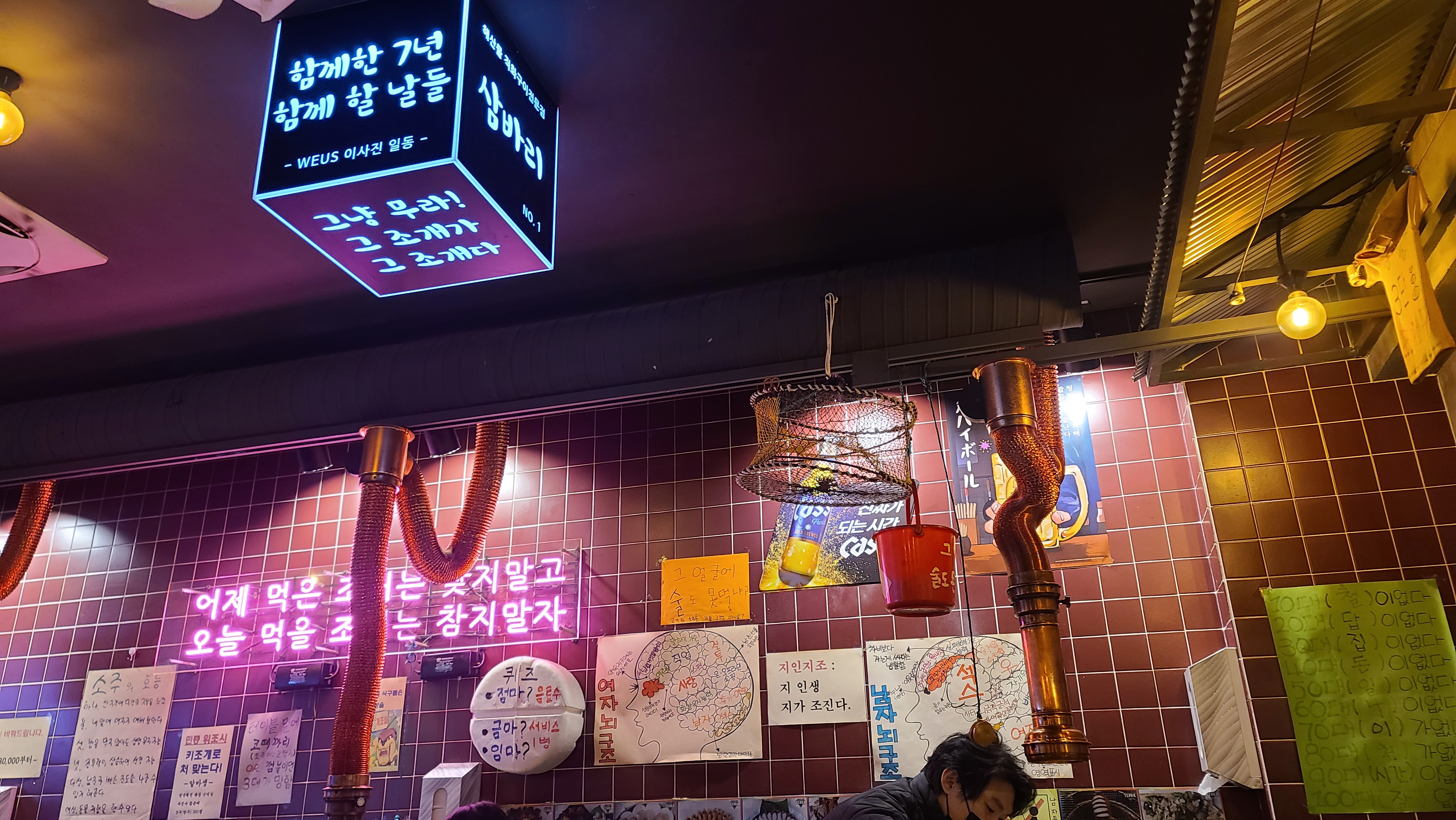 부채새우를 바로 주문하고 들어가서 자리를 잡고 기다리면서 가게 내부 인테리어를 살펴봅니다. 항상 오는 곳이지만 레트로 느낌의 인테리어와 돌직구와 같은 문구들이 공감을 얻으면서 술맛을 더욱 내주고 있는 것을 느끼게 됩니다.