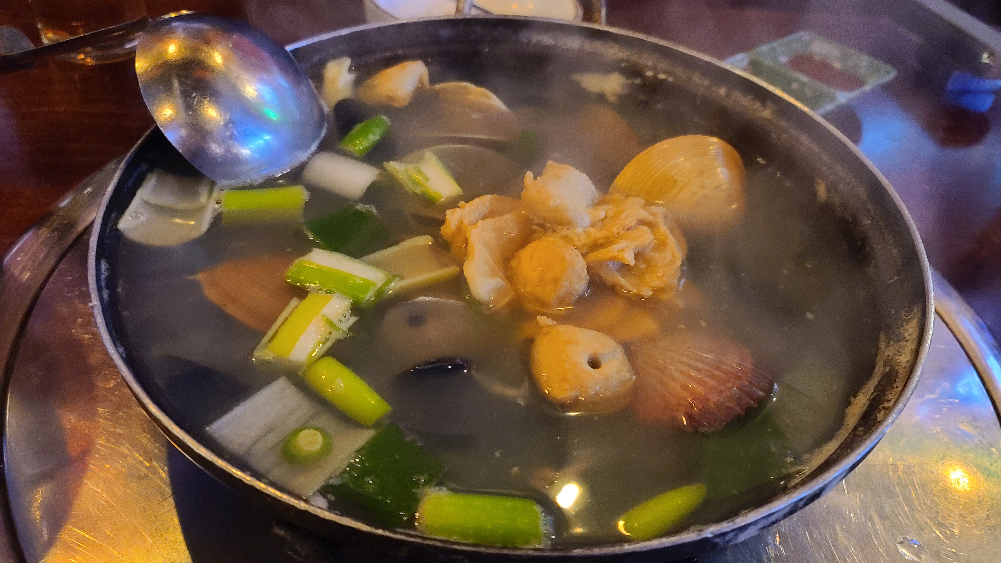 잠시 기다리자 푸짐한 조개 어묵탕부터 나왔습니다. 가리비, 백합, 동죽 등 다양한 조개와 어묵이 어우러진 어묵탕을 들이기며 차가운 몸은 녹여줍니다. 육수맛이 좋은게 벌써부터 기분이 좋아지고 있습니다.