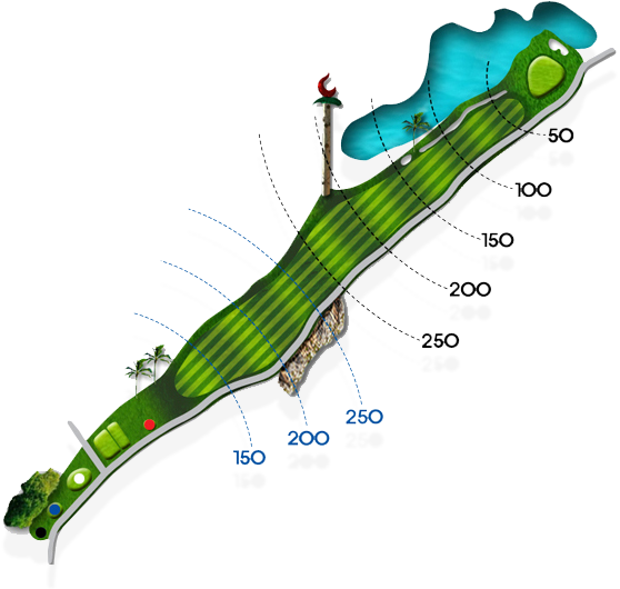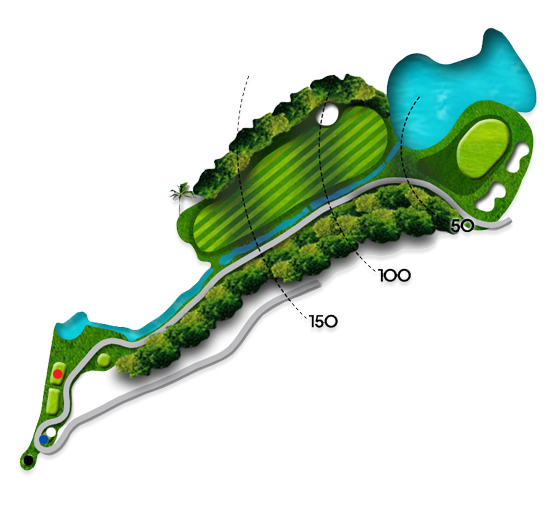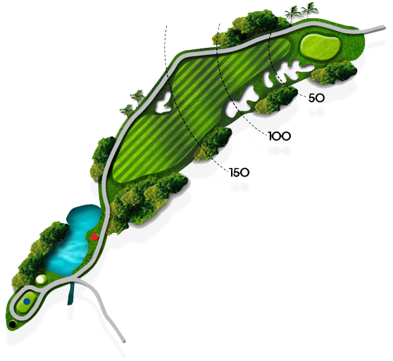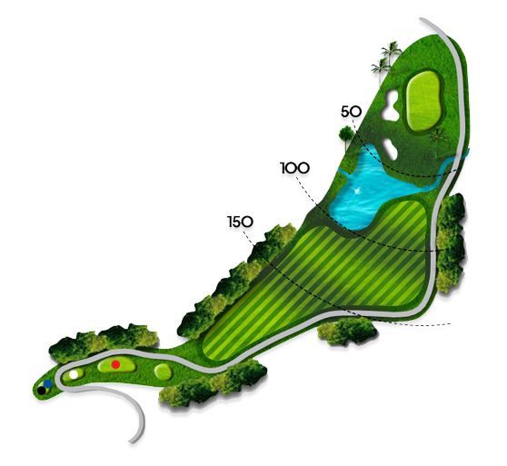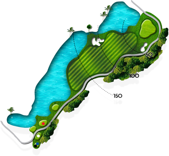 20m 내리막에 화이트티 기준 151m의 거리를 보여주는 파3 아일랜드 홀입니다. 내리막이라 탄도를 높게 하지 않으면 런이 발생하여 오버되는 경우가 발생되며 바람도 많이 불기에 거리를 맞추기가 쉽지 않은 홀입니다. 파를 기록하기도 쉽지 않으므로 신중한 공략이 요구되는 홀입니다.