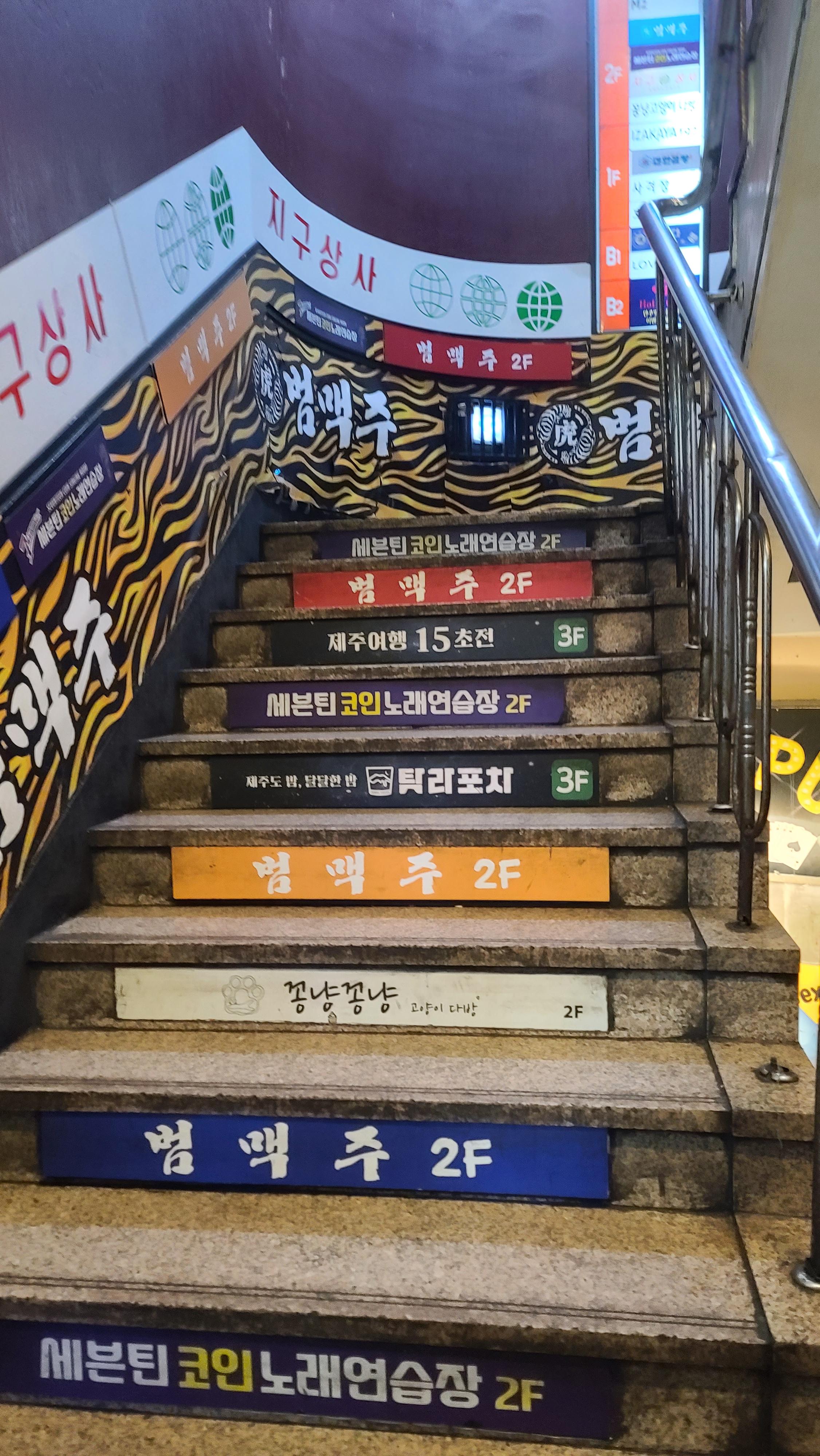 건물내 계단을 이용해서 올라가다 항상 가던 범맥주, 탐라포차, 주다방은 물이 좋지만 식상하기도 해서 새로운 지구상사를 경험해보기로 하고 2층에 위치한 지구상사에 들어가봅니다.