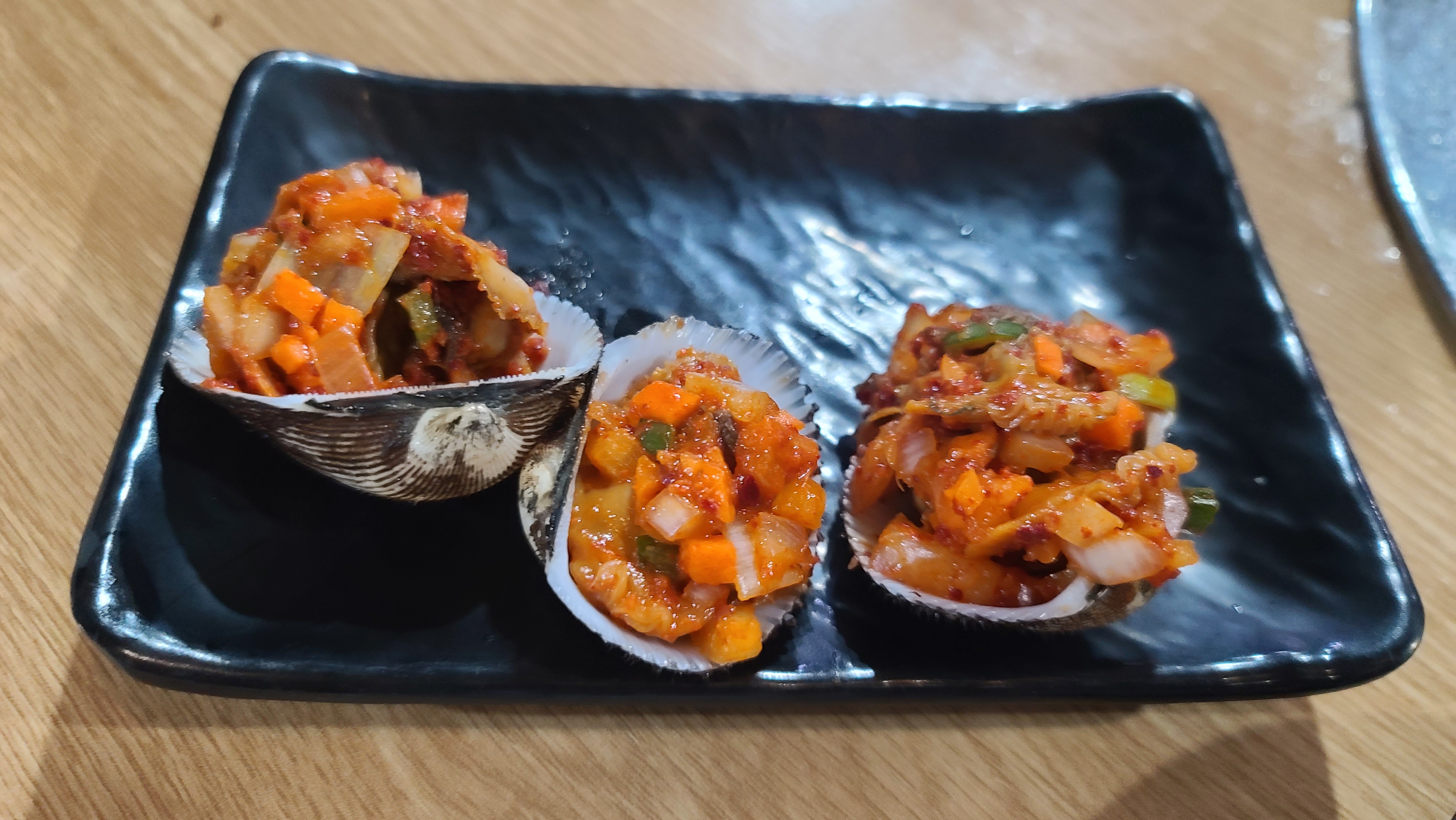감탄을 하면서 고기를 먹고 있으니 서비스메뉴로 꼬막무침이 나왔습니다. 꼬막살을 삶아서 양념에 무쳐낸 반찬으로 맛을보니 꼬막장과는 완전히 새로운 맛의 조화에 또한 감탄하게 됩니다. 역시 맛에대한 프라이드가 대단하신 사장님이구나 감탄을 하며 계속적으로 고기와 반찬을 맛보게 됩니다.