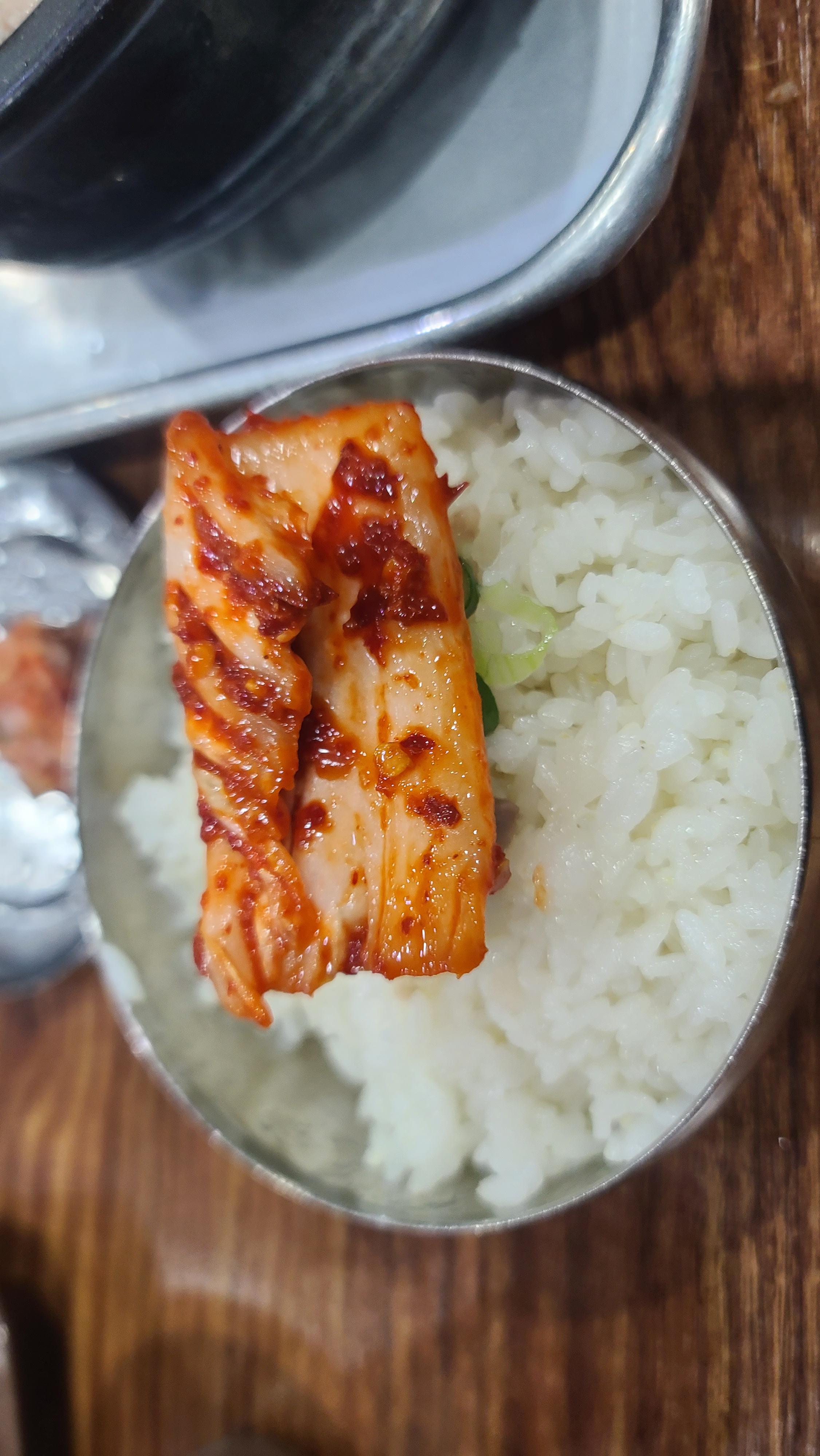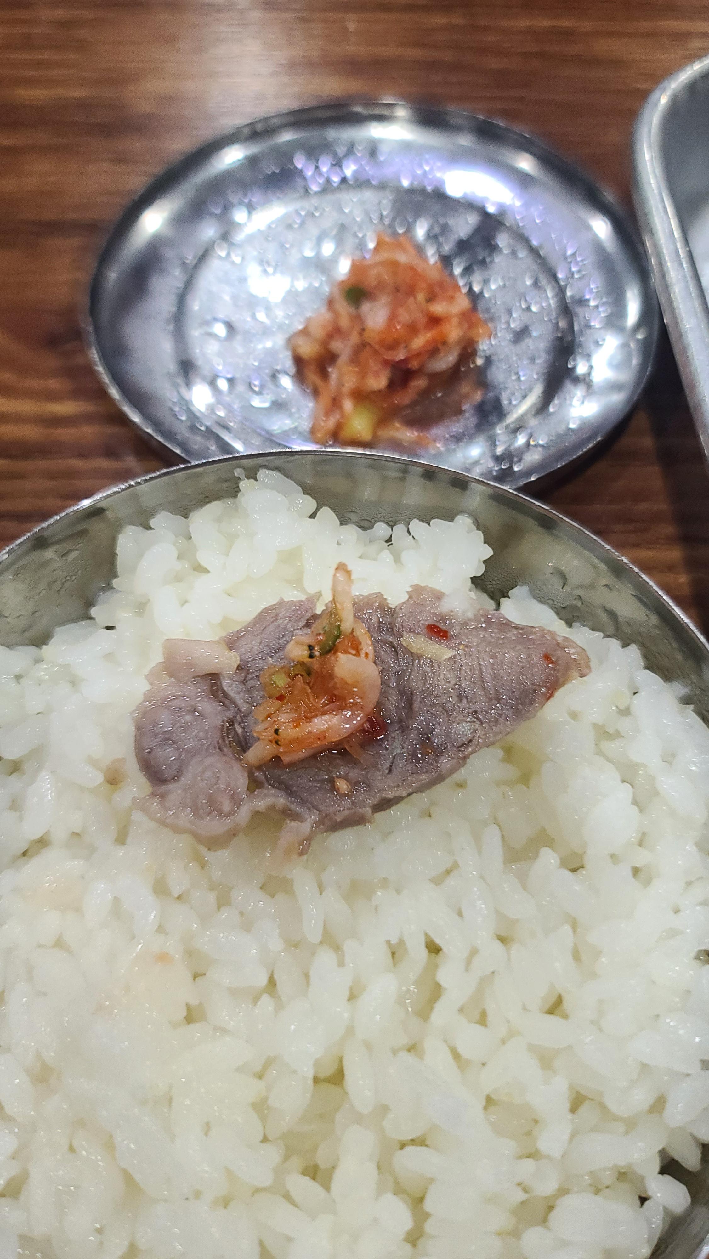 고기도 상당히 맛이 있지만 새우젓과 겉절이도 별미중의 별미가 아닐 수 없습니다. 고기에 새우젓을 올려서 그리고 약간 느끼하다고 생각될때 겉절이 김치를 한조각 밥과 같이 먹으면 느끼함이 사라지며 아삭아삭한 느낌에 신선함으로 입맛을 새롭게 고쳐주는 역할을 합니다.