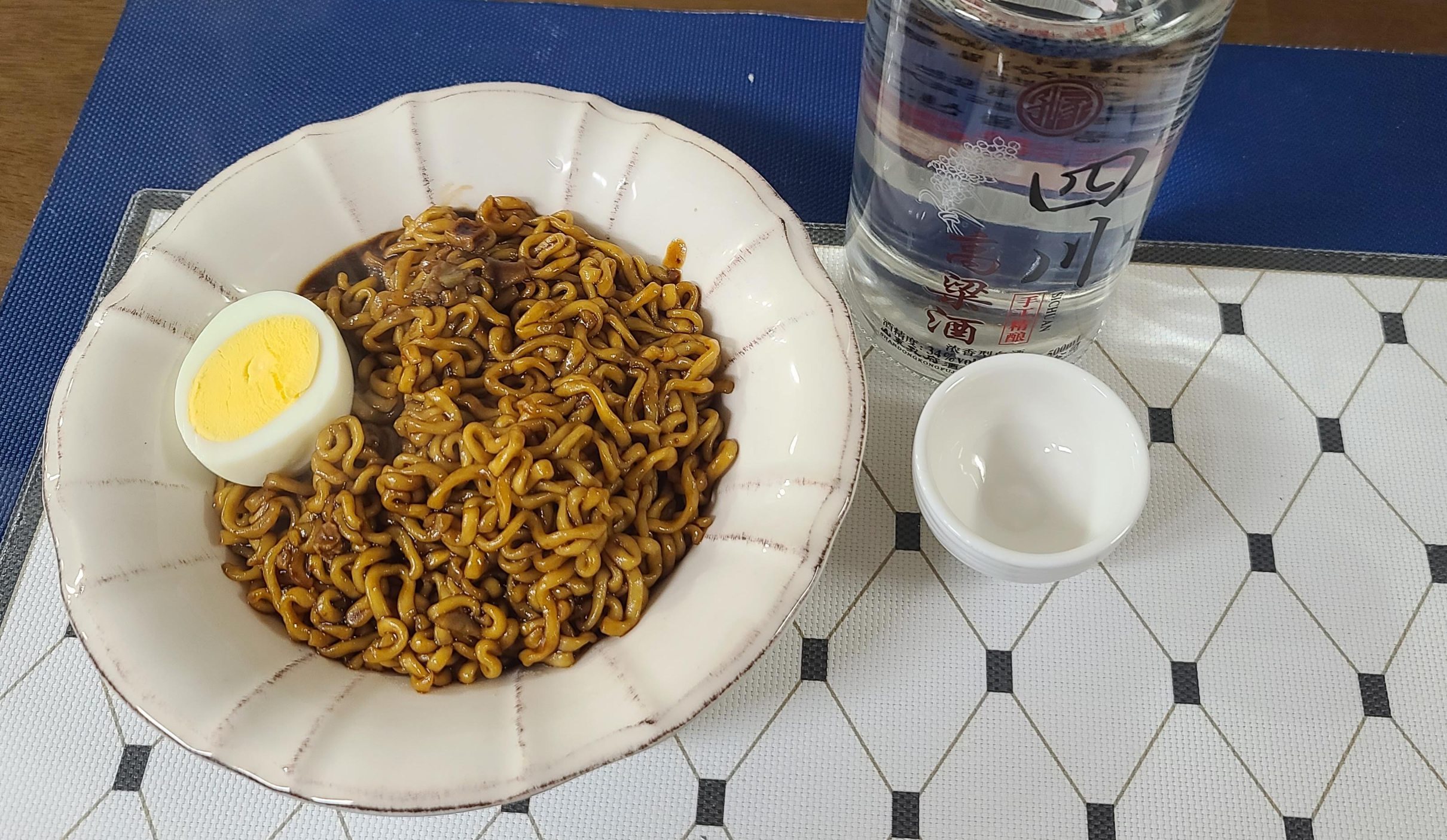 국내에 유명한 연태고량주와 공부가주로 알려진 산둥성에서 사천고량주를 내놓았다니 참으로 신기한 일입니다. 맛으로 판단을 하기 위하여 사천고량주를 오픈, 바이주의 맛을 가장 잘 살려주는 도자기잔을 세팅하고 안주로는 가장 익숙한 중화요리인 짜장면을 준비해봅니다.