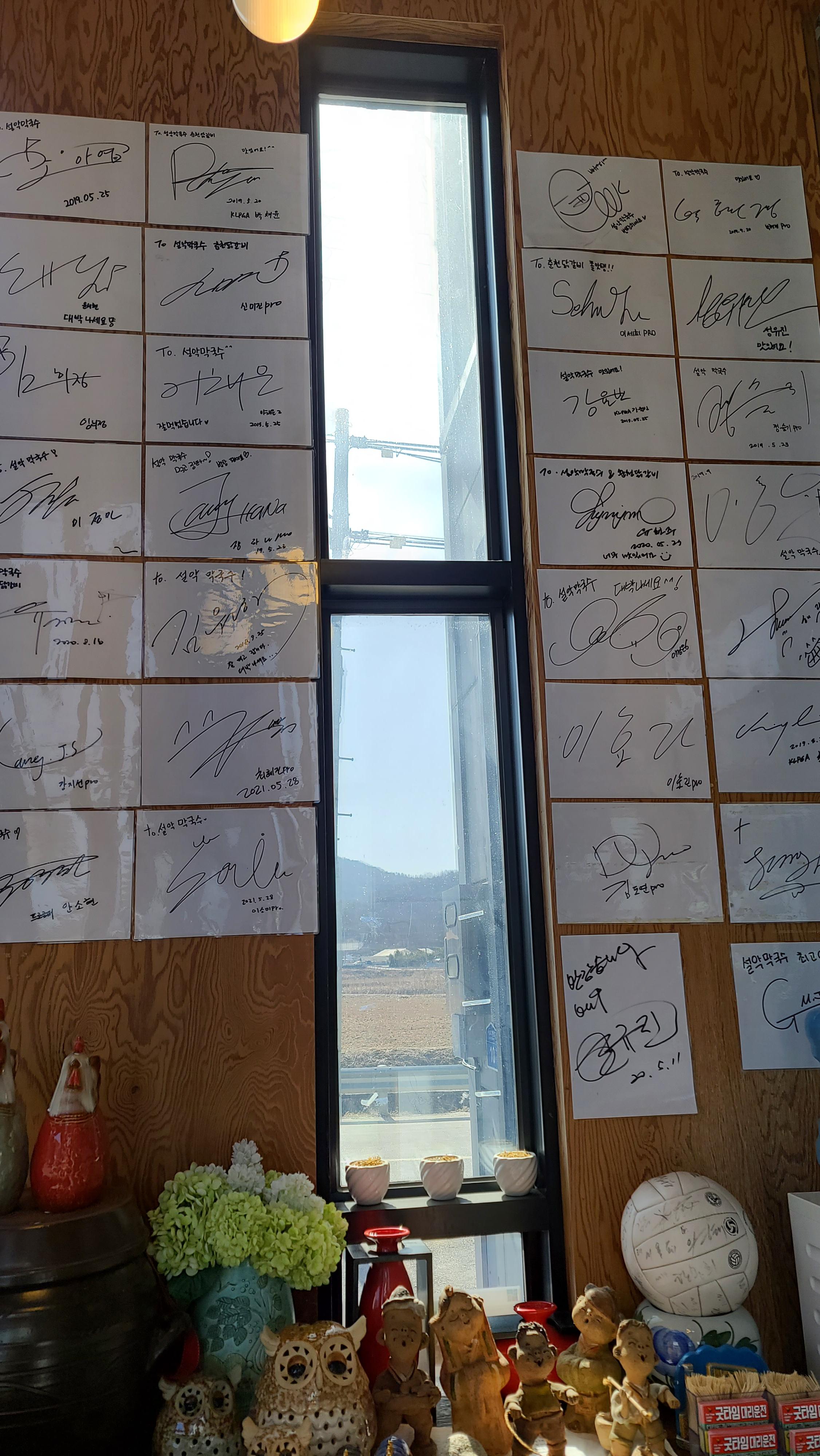 가게에 들어가니 골프장주변이라 그런지 수많은 골프프로들과 연예인들의 사인이 빼곡하게 걸려있는 모습이 맛집의 풍모를 보여주고 있습니다. 점심시간이 지난 늦은시간인데도 사람들이 가득 들어서 있는게 주변에 골프장이 많아 사람들이 라운딩후 다 이곳으로 모이는구나 하는 생각을 하게 됩니다.