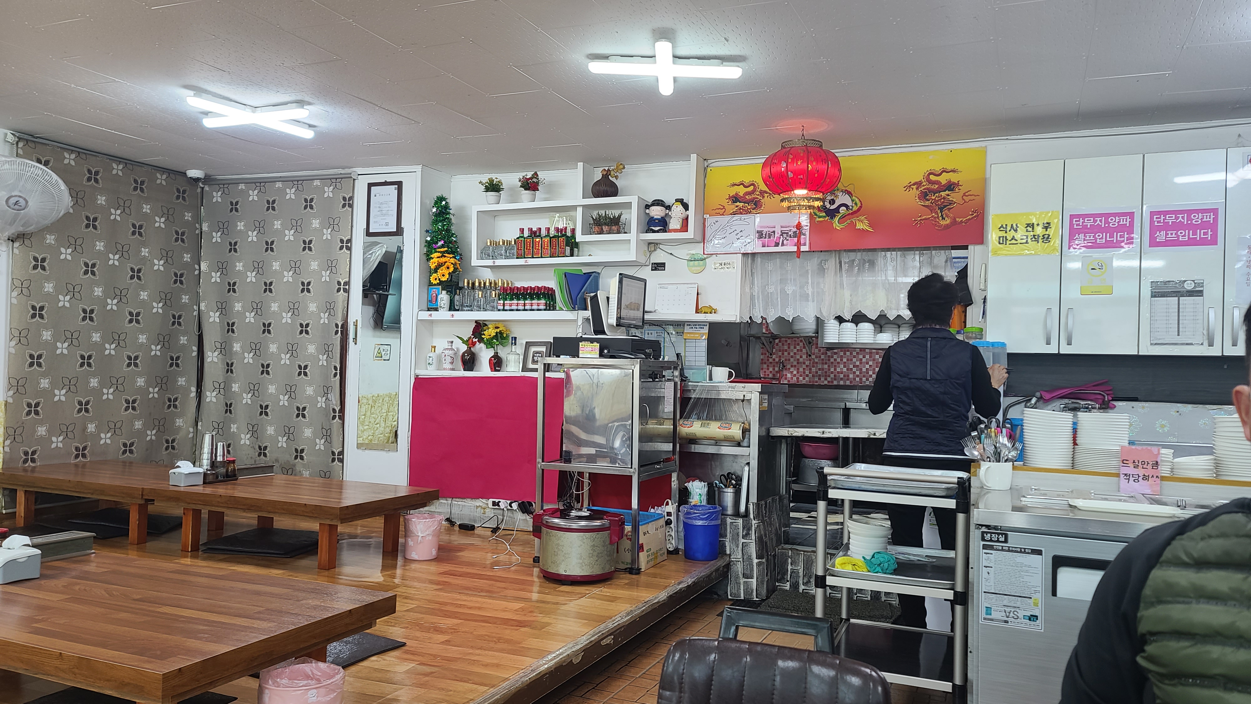 들어가서 살펴보니 오픈형 주방에 아주머니께서 친절하게 맞아주십니다. 테이블좌석과 앉아서 식사를 할 수 있는 평상스타일의 좌석 2가지가 마련되어 있는 모습이 참으로 이채롭습니다.