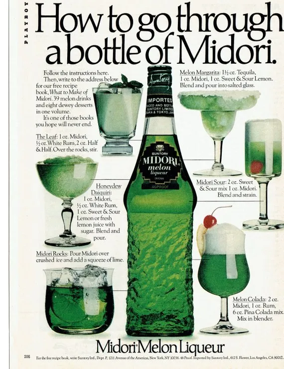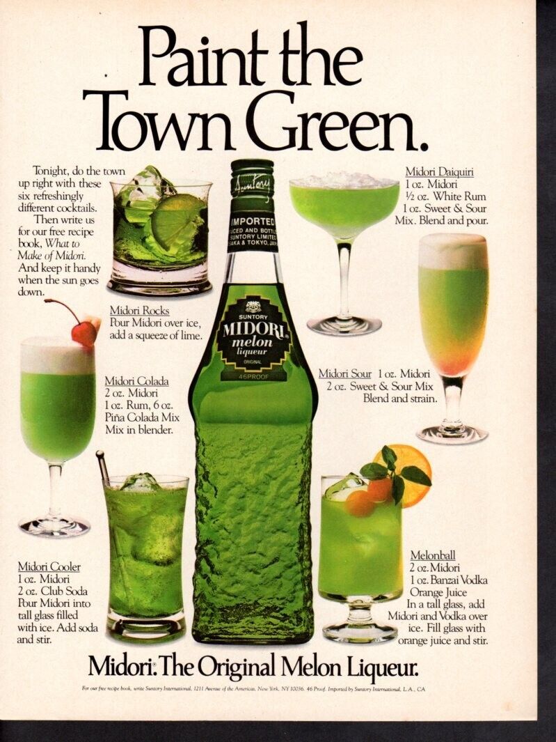 실제로 미국의 클럽에서 가장 먼저 제품이 히트한 후 다양한 칵테일 제조법을 담은 카다로그 및 광고를 통하여 미도리는 일반 대중들에게 더욱 빠른 속도로 알려졌으며, 이에 따라 수많은 미국의 칵테일바, 펍, 레스토랑 등에서 특유의 초록빛 칵테일의 대명사로 자리잡으며 전세계적으로 널리 퍼지게 된 것입니다.