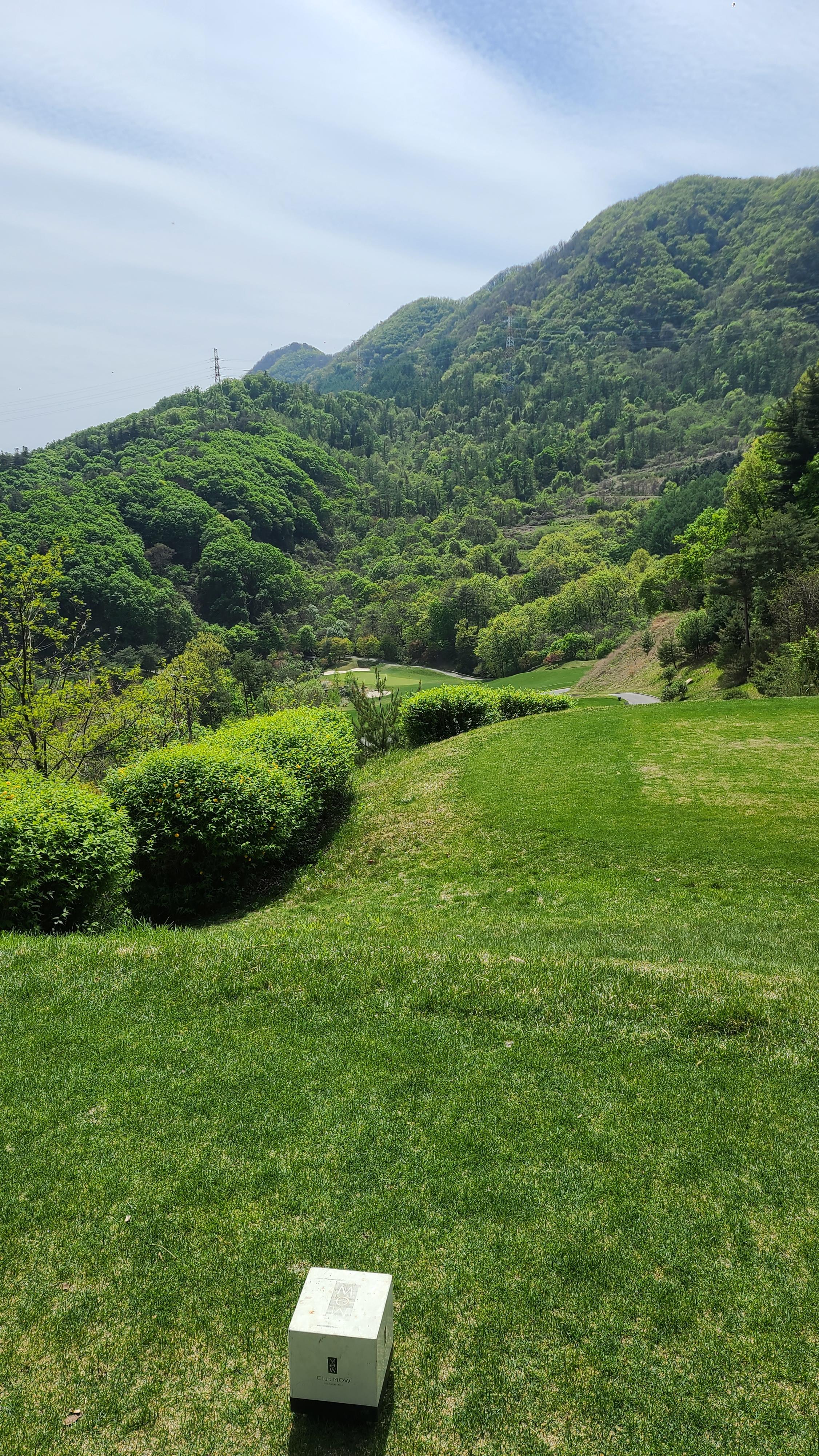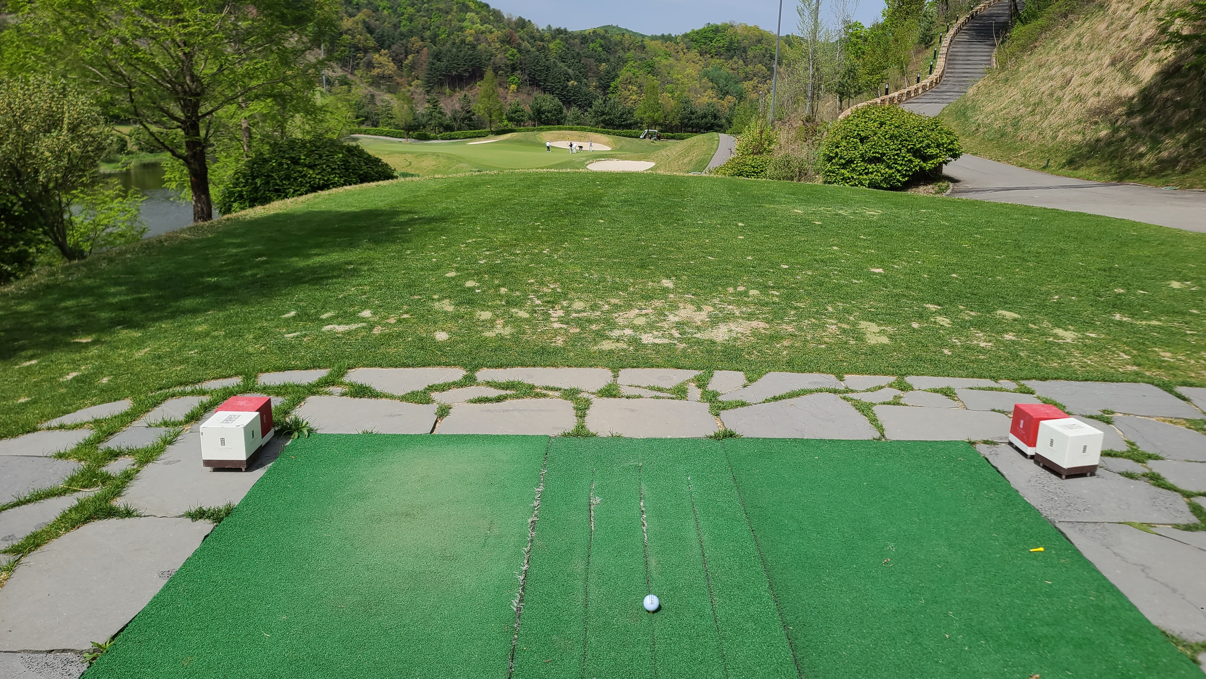 첫 티샷이라 시간도 걸리고 긴장도 되기 때문에 마음의 평안도 얻을겸 주변을 둘러봅니다. 마운틴 코스는 이름답게 클럽모우에서 가장 높은 지대에 위치해 있는 1번홀부터 주변홀과 모든 풍경이 보이는 것을 느낄 수가 있습니다.