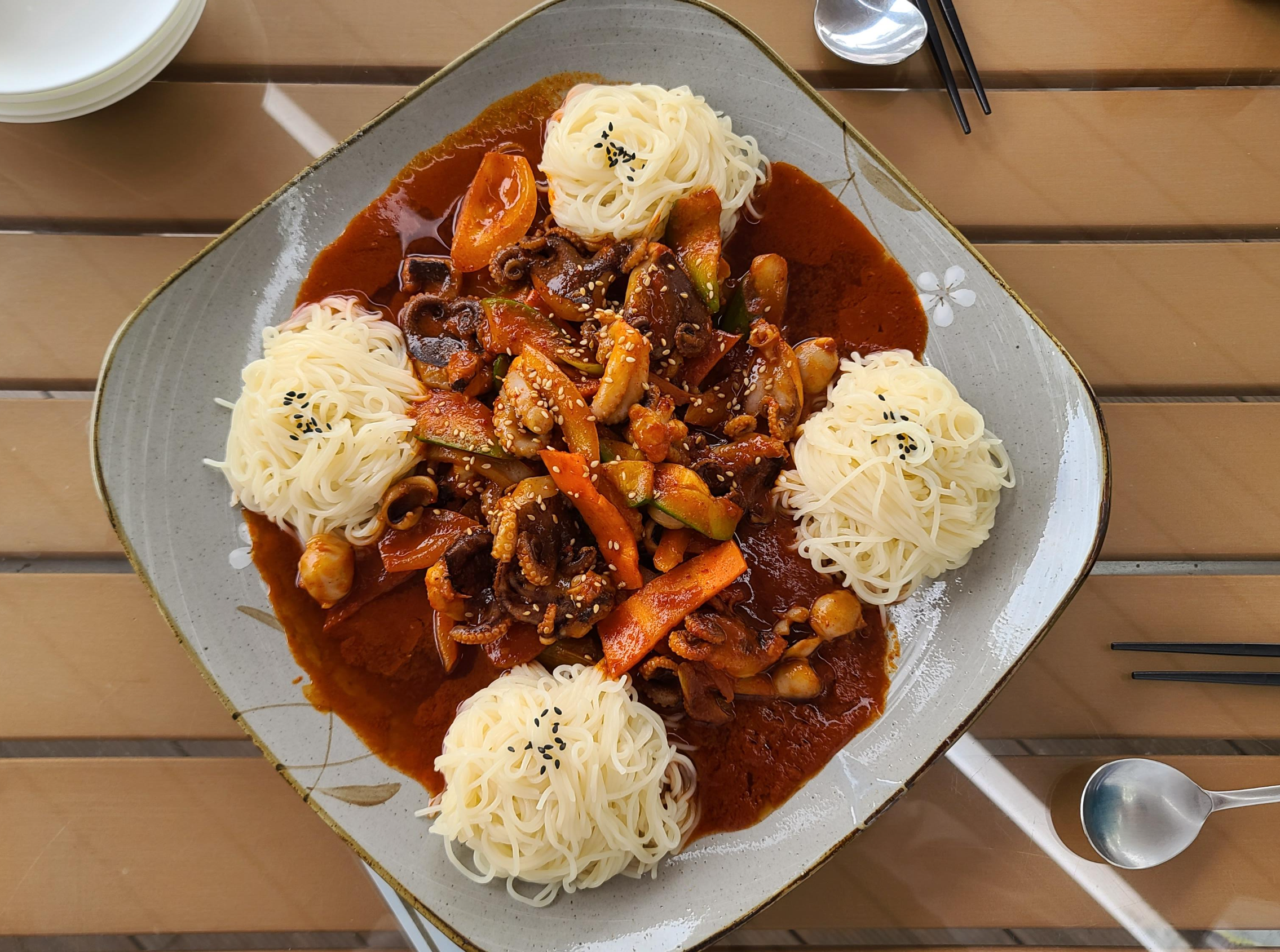 이야기 꽃을 피우다보니 주문한 음식도 나오고 낙지소면을 맛있게 즐겨봅니다만 42000원의 가성비는 좀 너무하다는 생각이 들게 됩니다.