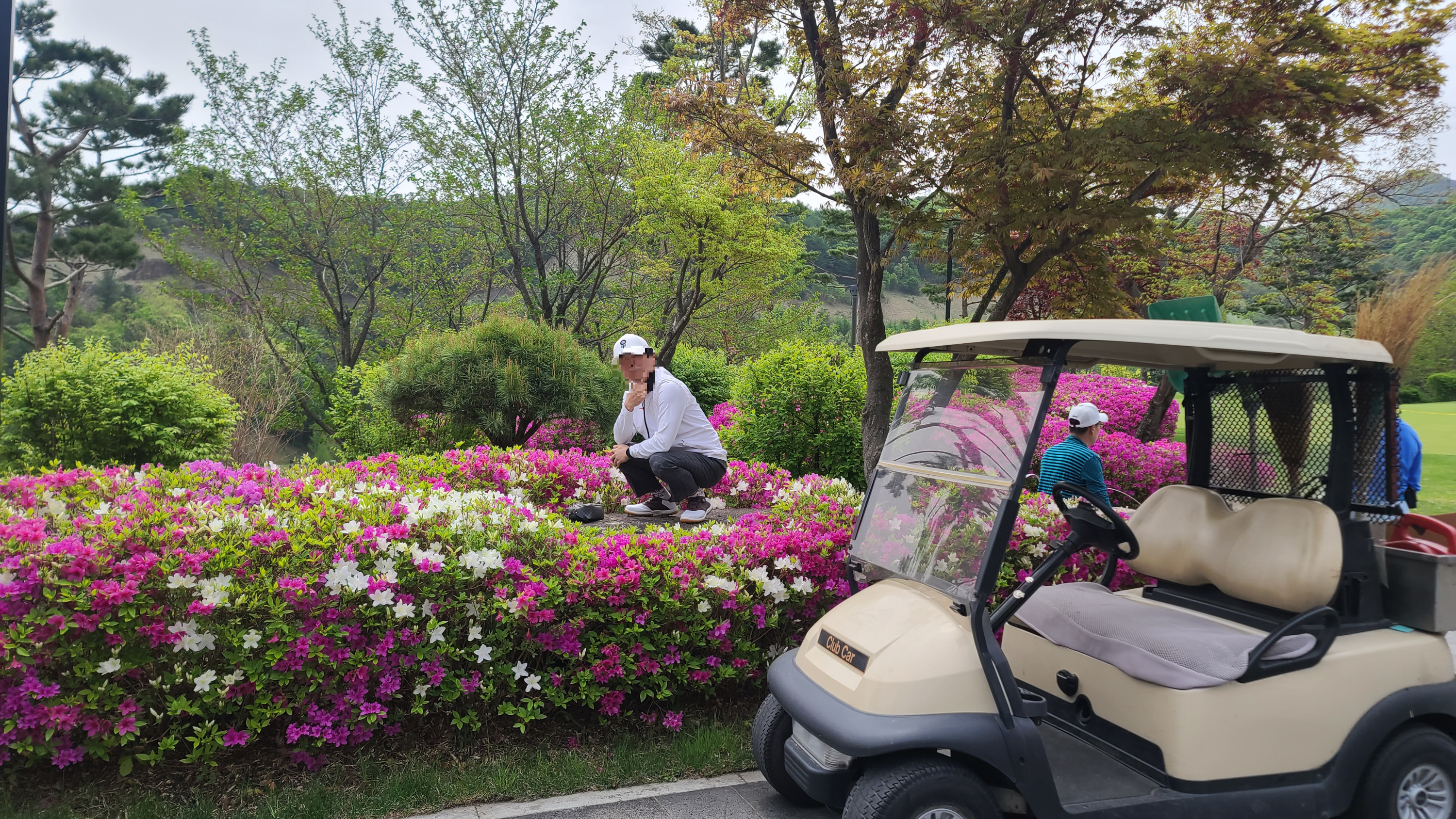 준비를 마치고 본격적으로 라운딩을 시작하기 전에 스타트하우스 앞 퍼팅 연습장 주변에서 만개한 꽃들을 바라보며 자연이 선물해준 포토존에서 사진도 찍고 꽃구경을 즐겨봅니다. 승부에 너무 집착하지 않고 자연을 즐긴다면 마음의 평안을 가져다주고 스코어도 오히려 좋아지는 효과를 느끼게 됩니다.