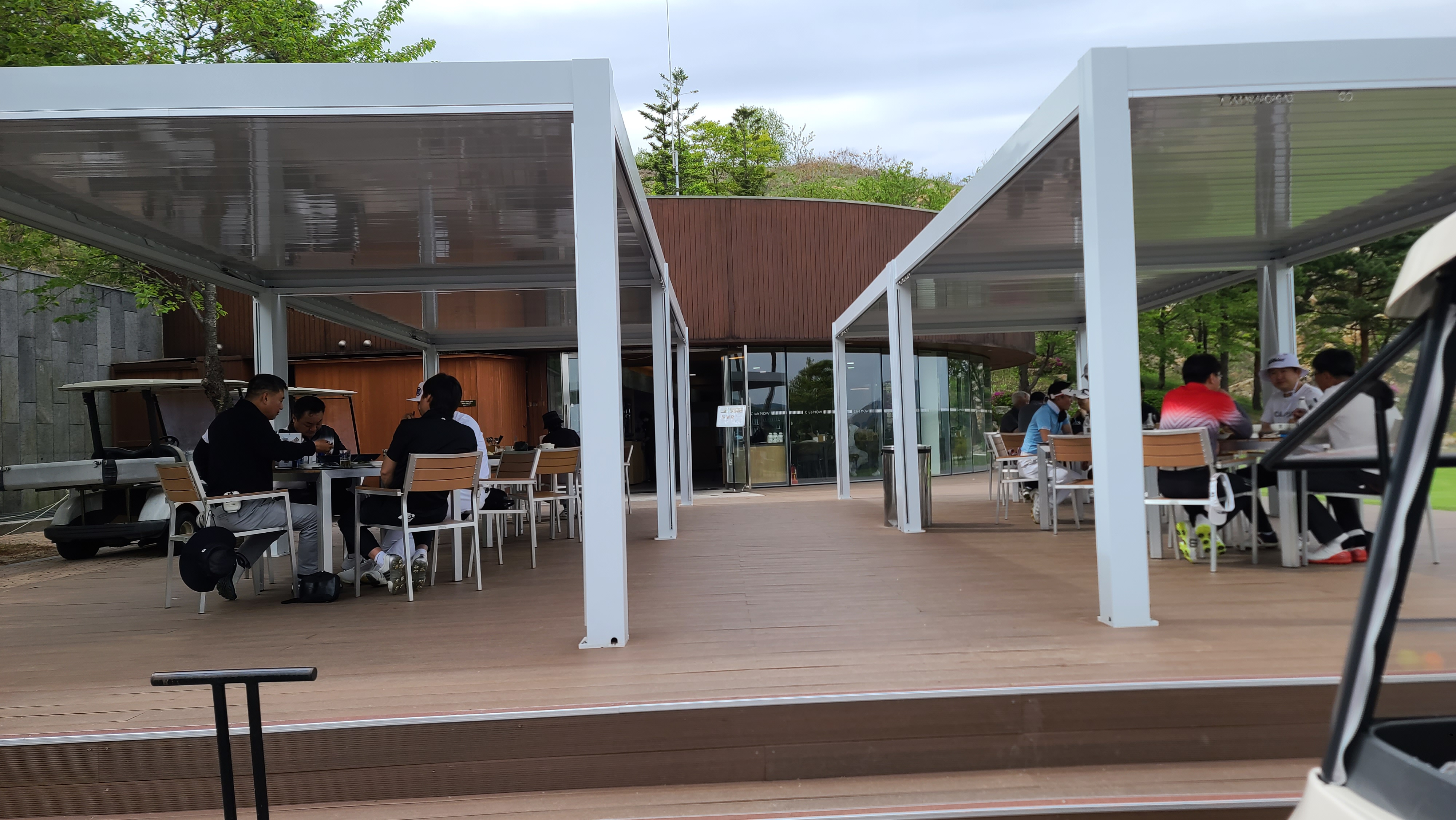 어느새 즐거웠던 클럽모우 마운틴 코스를 마무리하고 그늘집에 들려서 즐겁게 식사를 하고 전반 라운딩에 대해서 이야기 꽃을 피우기로 합니다. 서로의 공략, 구질, 코스의 장단점 등을 이야기하며 즐거운 시간이 계속됩니다.