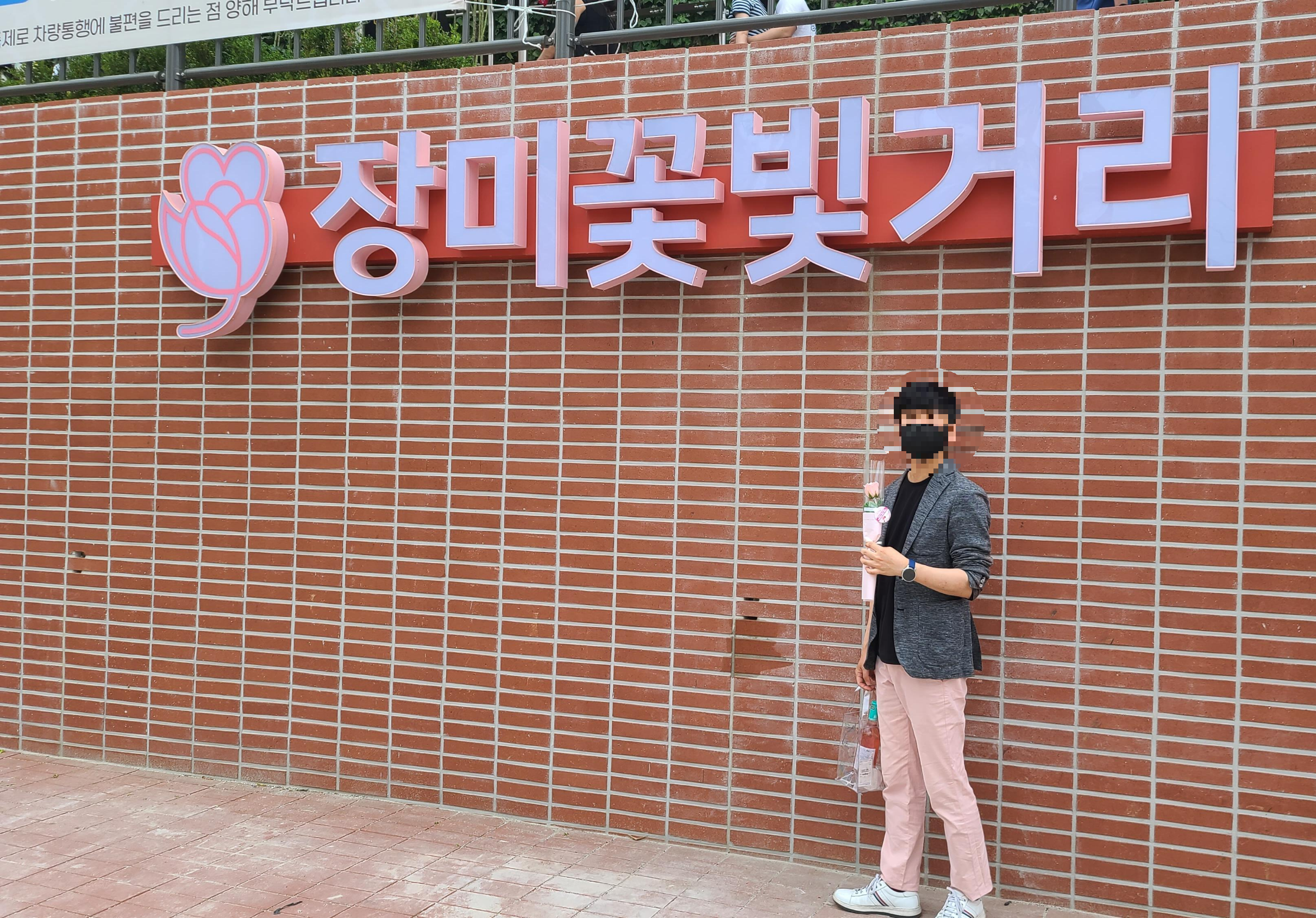 주차를 하고 묵현초등학교 입구에서 산책로 탐방을 시작해봅니다. 장미꽃빛거리라는 입구 명칭이 붙어 있는 곳으로 장미에 어울리는 로제의 분위기로 코디도 맞추고 로제와인도 준비해서 나들이를 즐겨봅니다. 산책로를보니 첫날이고 주말이라 그런지 사람들이 꽤 많이 있는 것이 보입니다. 중랑장미축제에서 이제 어느덧 서울장미축제로 행사가 점점 커지는 것이 느껴지고 있습니다.
