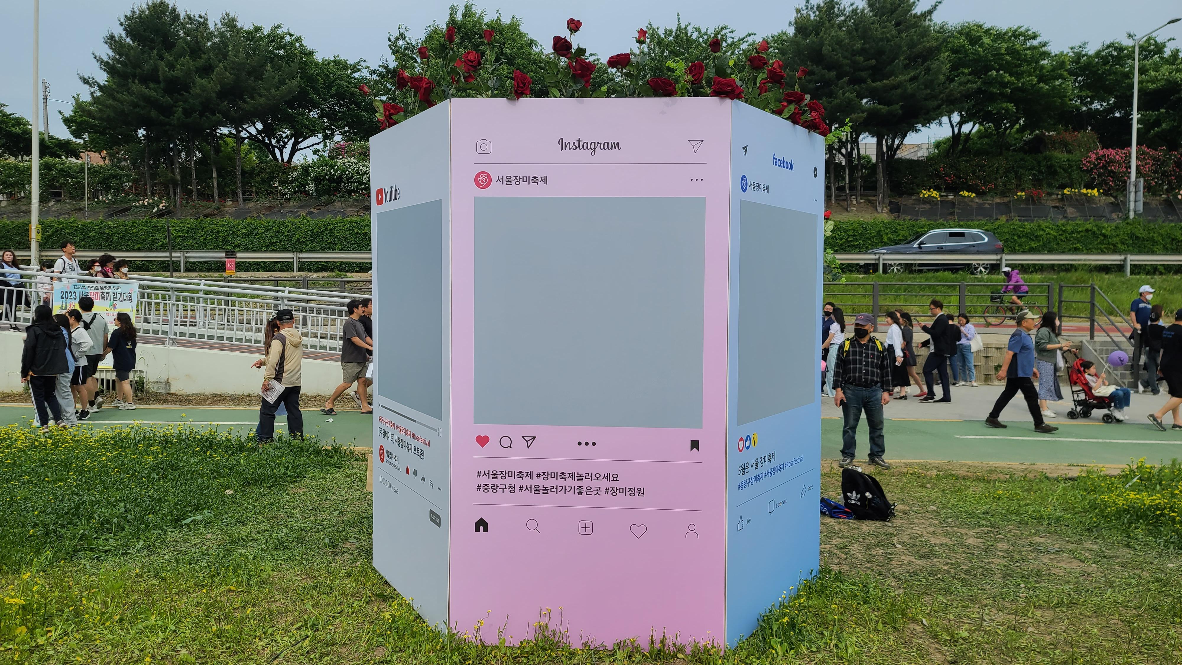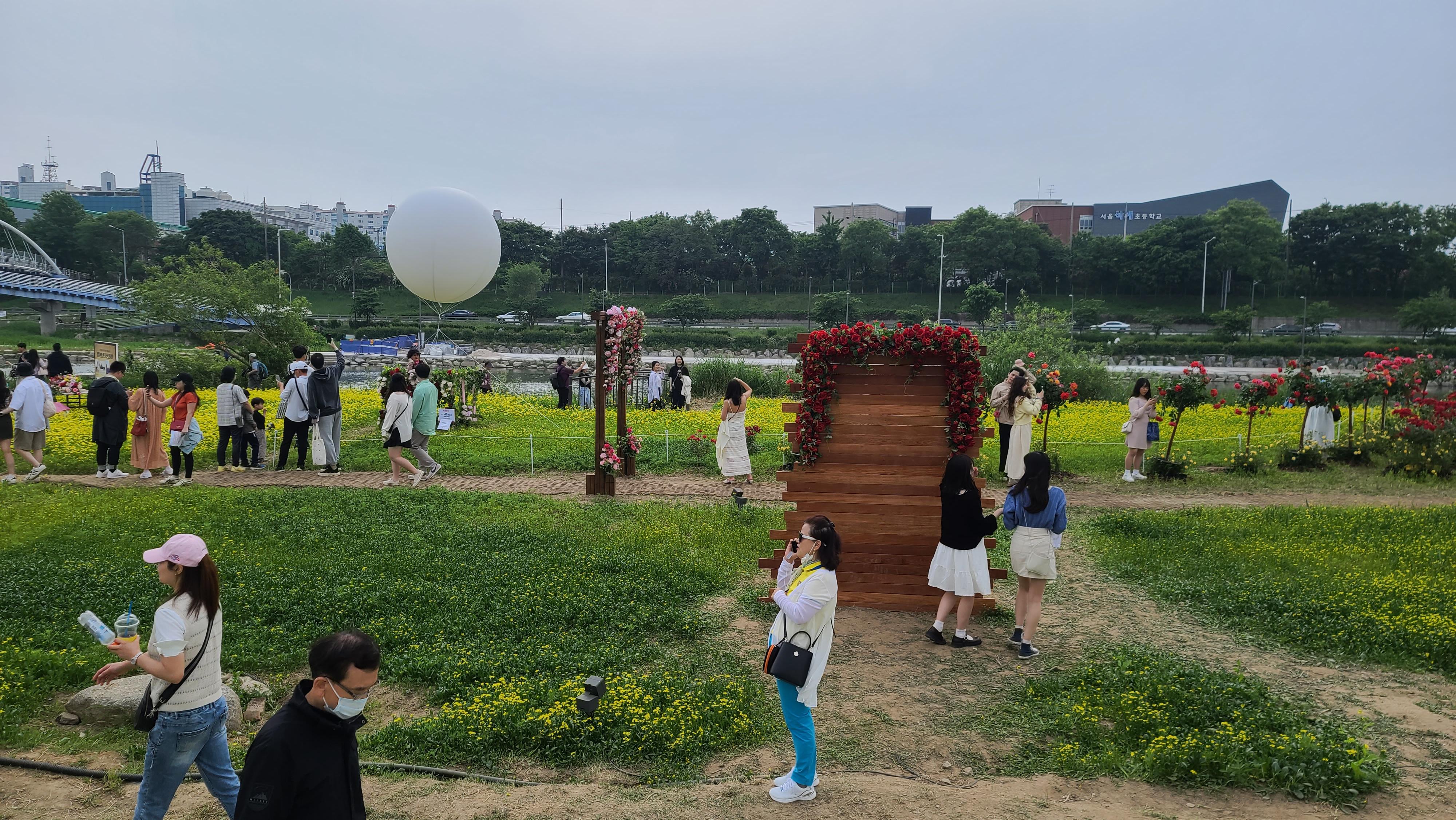 축제에서 빠질 수가 없는 것이 바로 사진입니다. 추억은 사진으로 남기는 것, 중랑천 바로 옆의 공원부지에는 여러가지 포토존이 꾸며져 있습니다. 인스타그램 업로드용 포토존을 비롯하여 꽃, 벌룬, 유채, 자전거, 피아노 등 취향에 따라 연출된 사진을 남길 수 있도록 다양한 포토존이 구성되어 있어 저마다 순서를 기다리며 사진들을 찍는 모습이 인상적입니다.