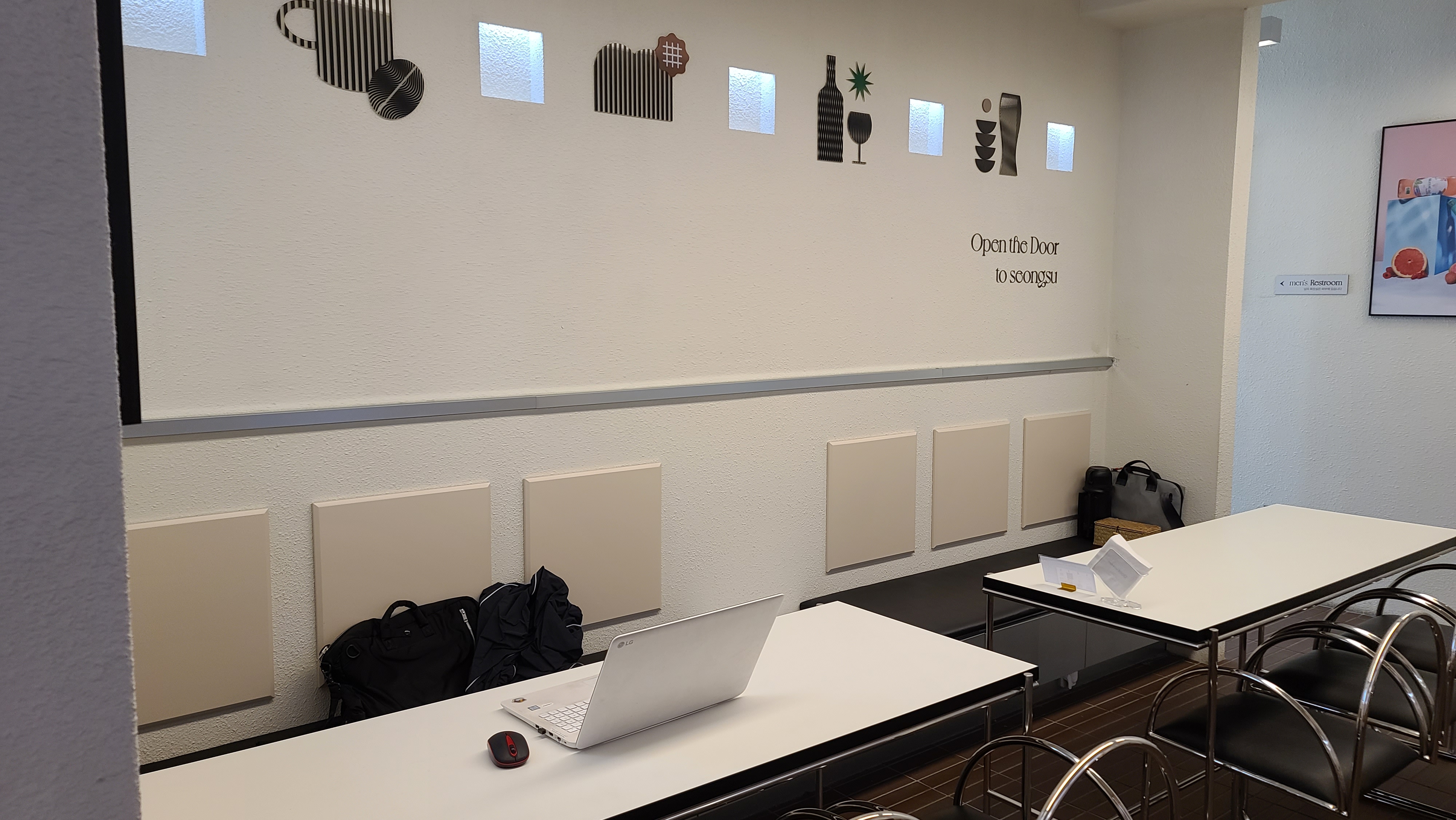 내부 디자인도 깔끔하고 인테리어도 모던하고 좋아서 성수 카페거리 핫플 커피숍의 느낌이라는 생각에 지나다니는 사람들을 보니까 상당히 재미있게 느껴집니다. 다른 팝업스토어는 짜여진 경로에 엄숙하게 제한된 인원만 들어오는 경우가 있어서 자유도가 높지 않은데 성수에서 열린 이번 로제 와인 팝업스토어는 상당히 자유도가 높고 트렌드에 민감한 어린세대들이 많아서 참으로 구경하는 재미가 있는것 같습니다.