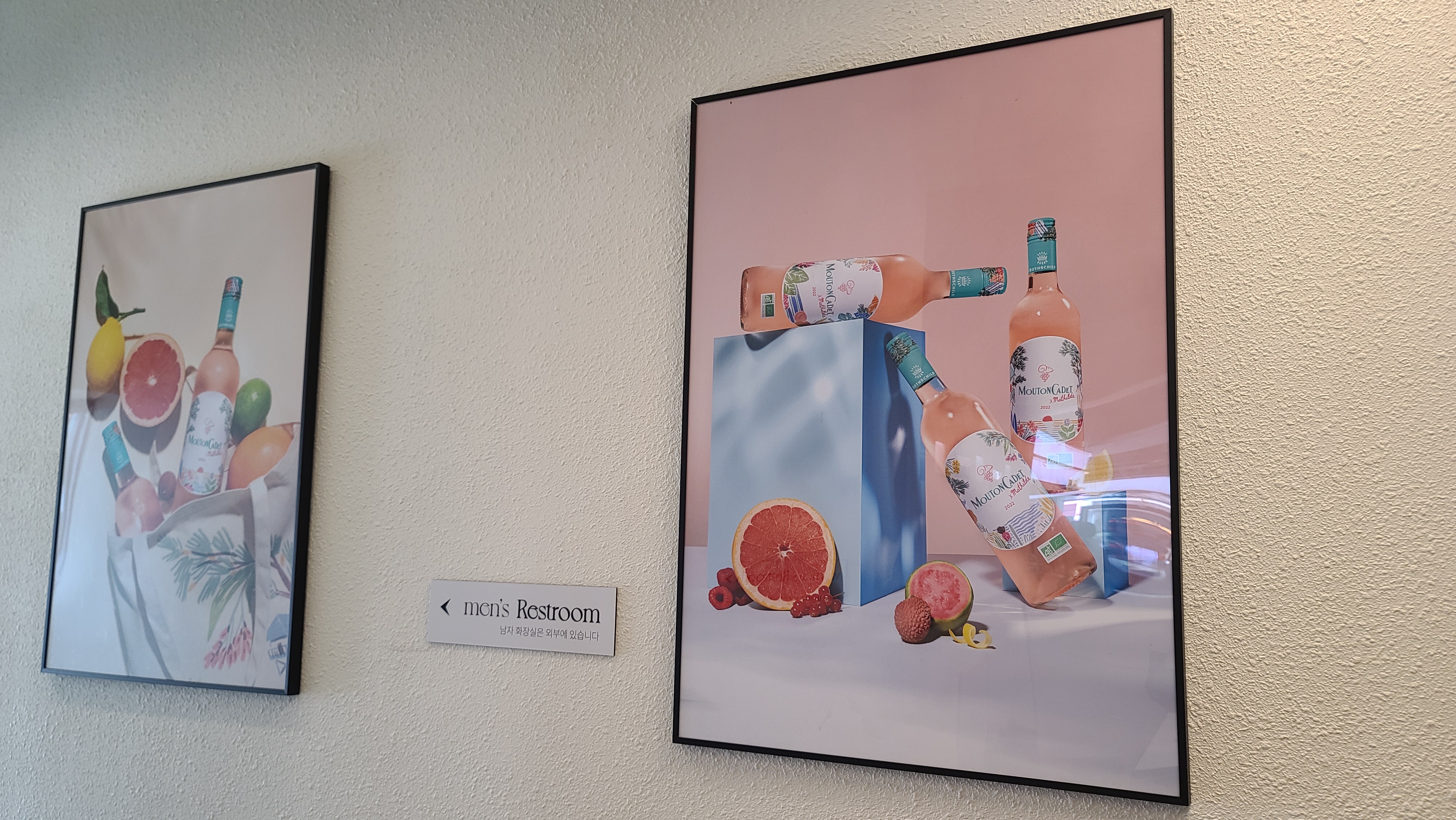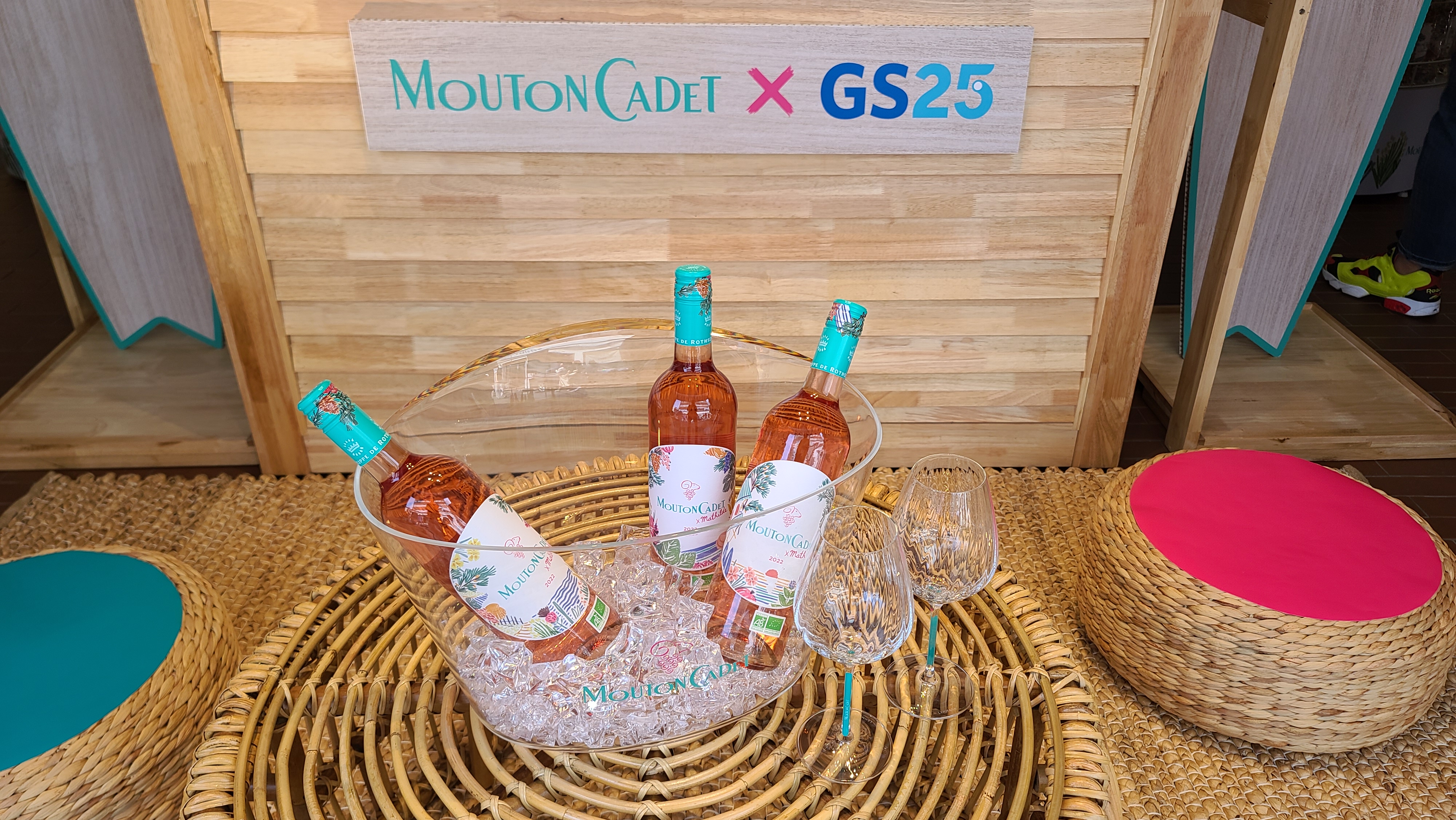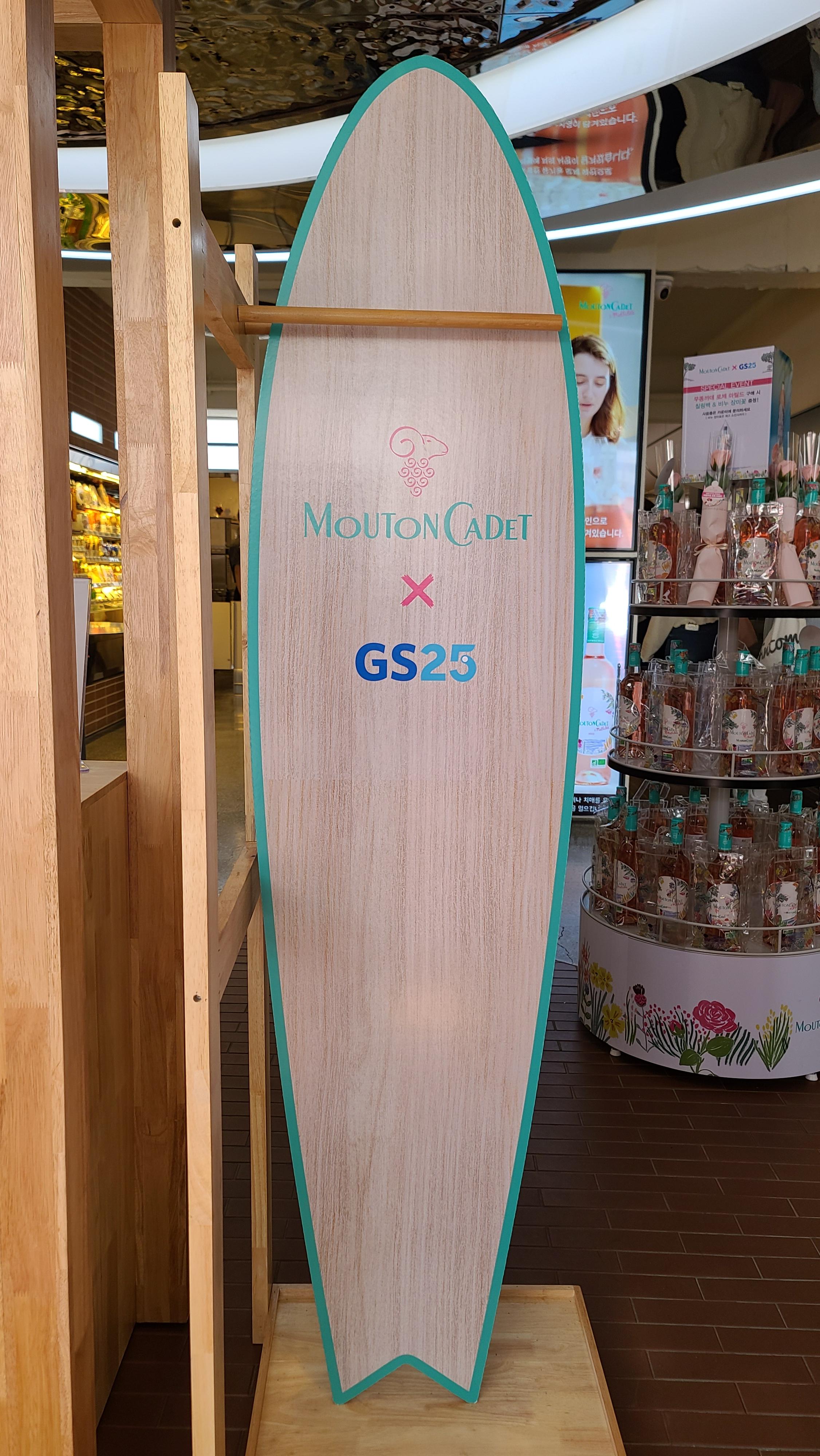 무똥까데 로제 마틸드가 그려진 자동문을 지나 팝업스토어 내부로 들어가니 여름을 상징하는 서핑보드가 눈에 가장 먼저 들어옵니다. 여름에 즐기는 상쾌한 로제와인이라는 이미지답게 바다를 연상시키는 푸른색의 서핑보드를 보고 있으니 바닷가에서 로제와인 한잔을 하며 태양을 즐기는 휴가철이 저절로 생각이 나고 있습니다.