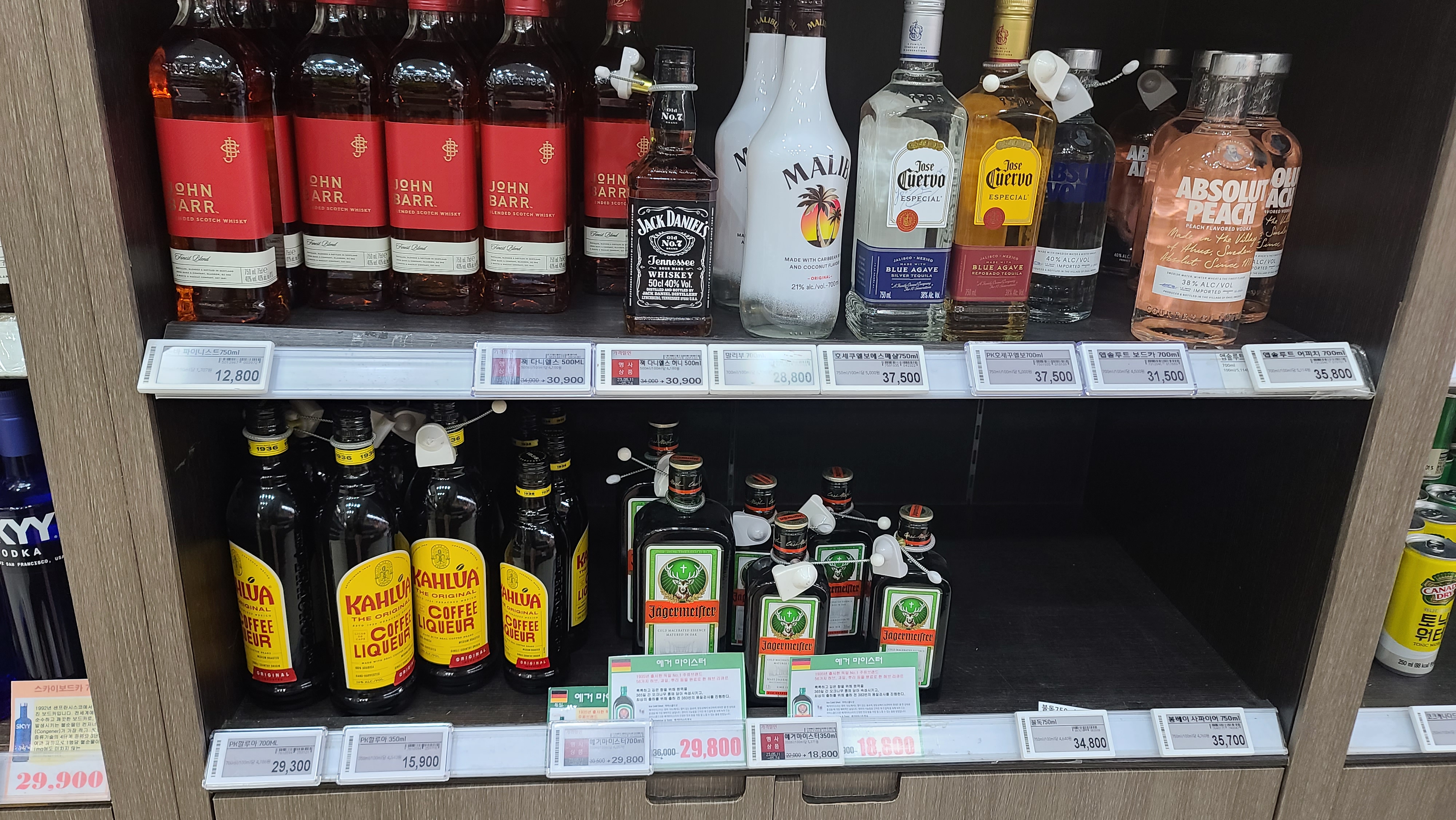 스카치블루와 조니워커레드를 꼭 빼닯은 존바위스키, 잭다니엘, 말리부, 호세쿠엘보, 앱솔루트 보드카, 깔루아, 예거마이스터 농협하나로마트의 위스키매대에 진열된 제품들은 하나같이 대중적인 것들이며 특이한 제품들은 잘 보이지 않는 것으로 보아 제품을 받아들일때 참으로 보수적으로 진행한다는 것을 느끼게 됩니다.