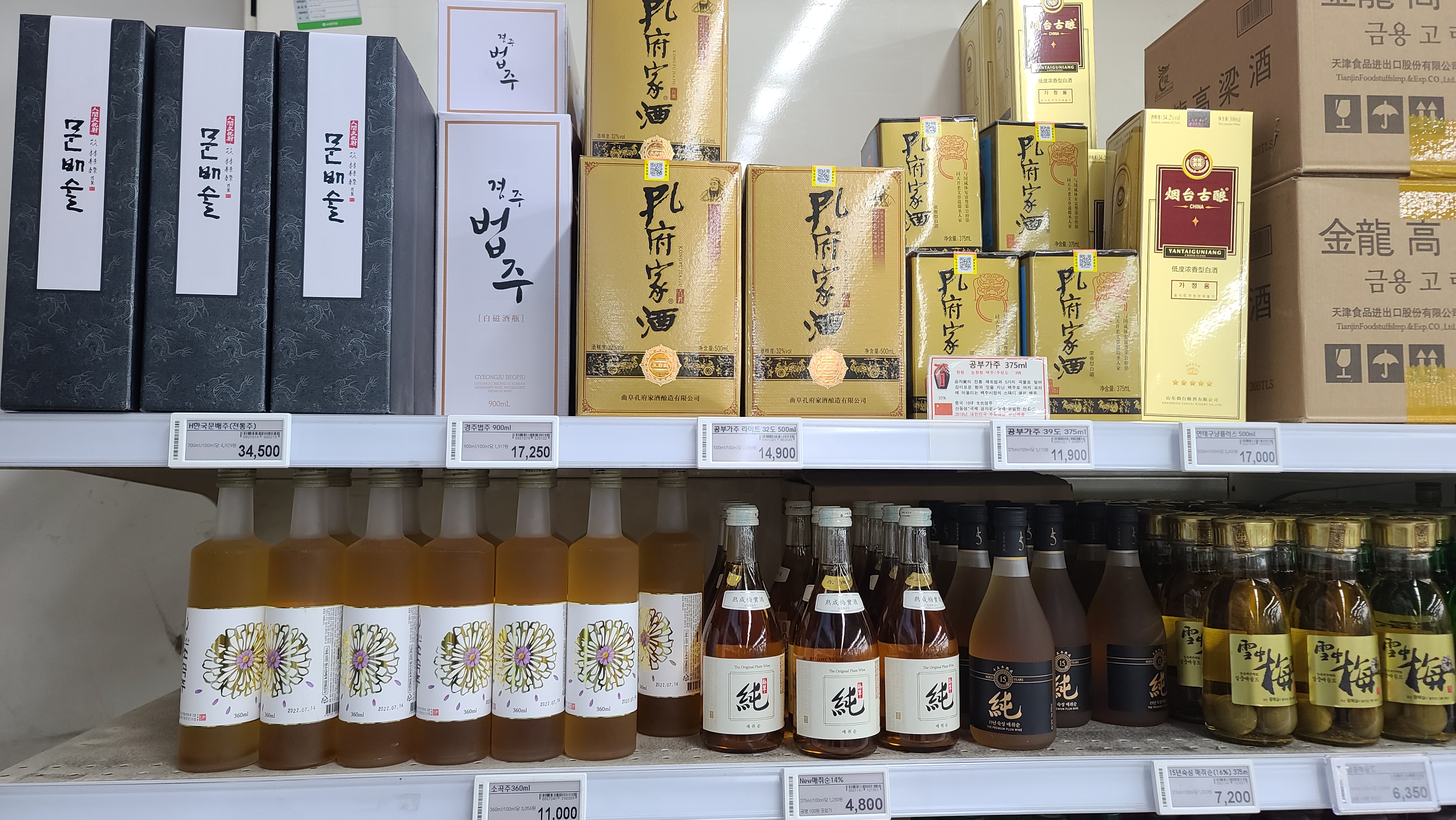 옆쪽의 진열대를 보니 문배술, 경주 법주, 소곡주, 설중매 등 전통주와 공부가주, 연태고량주 등 고량주가 섞여서 진열되어 있는 모습이 보입니다. 역시 손님들이 나이대가 있어서인지 가장 잘 보이는 곳에 나이가 비교적 많은 사람들이 좋아하는 전통주와 고량주를 진열해놓은 모습이 열일하는 구나 하고 느끼게 됩니다.