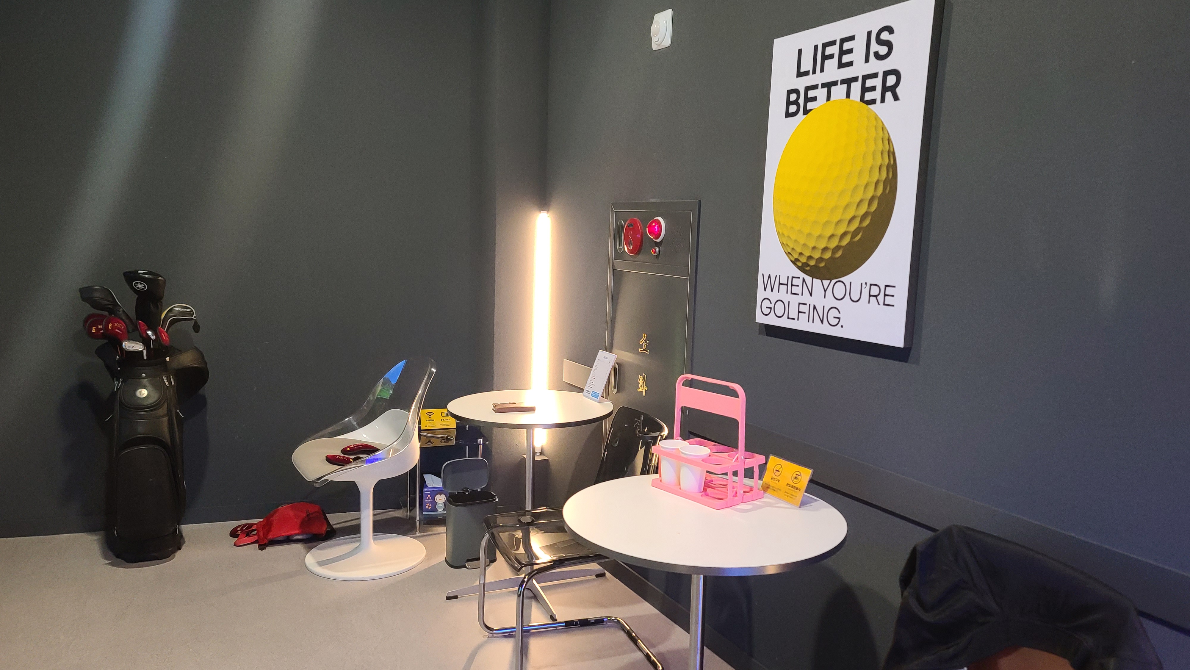 인도어에서 연습을 하다가 사람들과 스크린을 치고싶으면 카운터에 예약을 하고 타석 뒤쪽 방처럼 세팅되어 있는 곳에서 스크린골프를 즐길 수가 있도록 세팅을 해놓았습니다. 방의 갯수를 살펴보니 7개나 운영중이고 다음달에는 골프존 야외 스크린도 오픈예정이라 스크린 골프장으로서도 상당히 큰 사이즈라는 것을 깨닫게 됩니다.