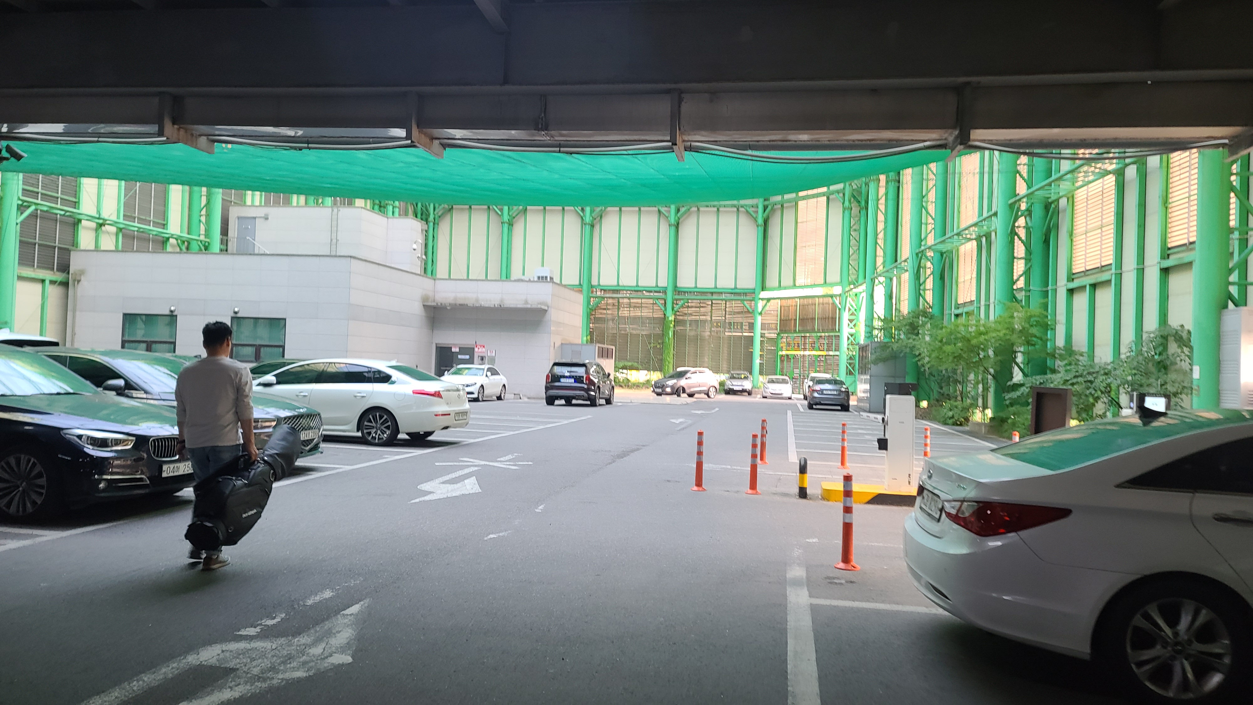 다시금 연습으로 자세와 구질을 연습하고 체력을 모두 소진 후 집에 돌아가는 길 주차장을 살펴보니 연습장 그물 밑으로 전체가 주차장이라 공간의 효율성이 좋으며 꽤 여유자리가 있는 것이 보입니다.