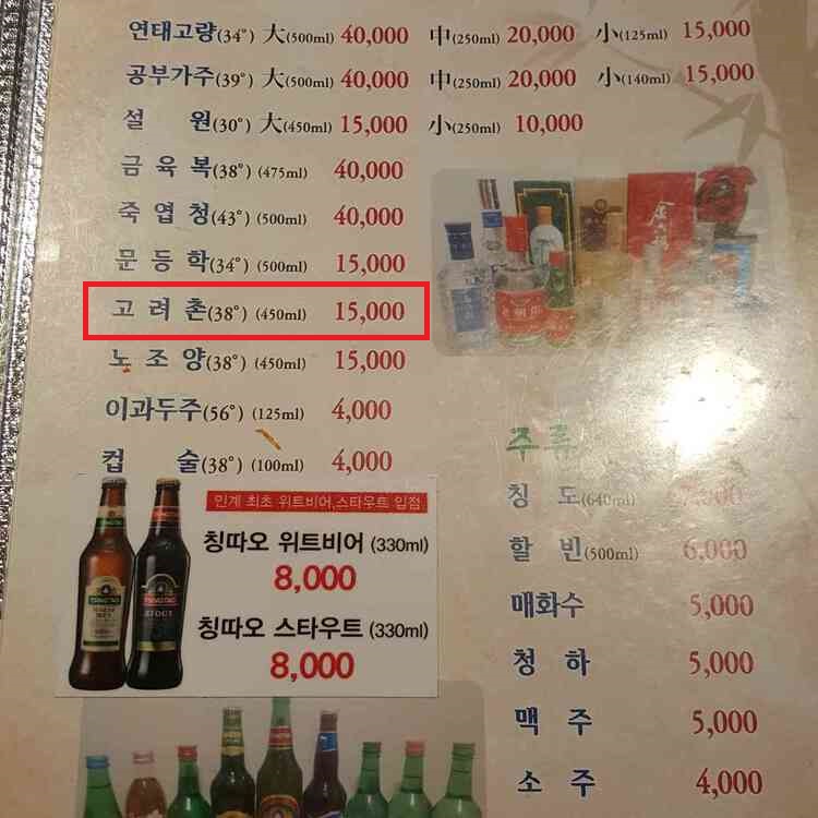 고려촌 종류 및 가격