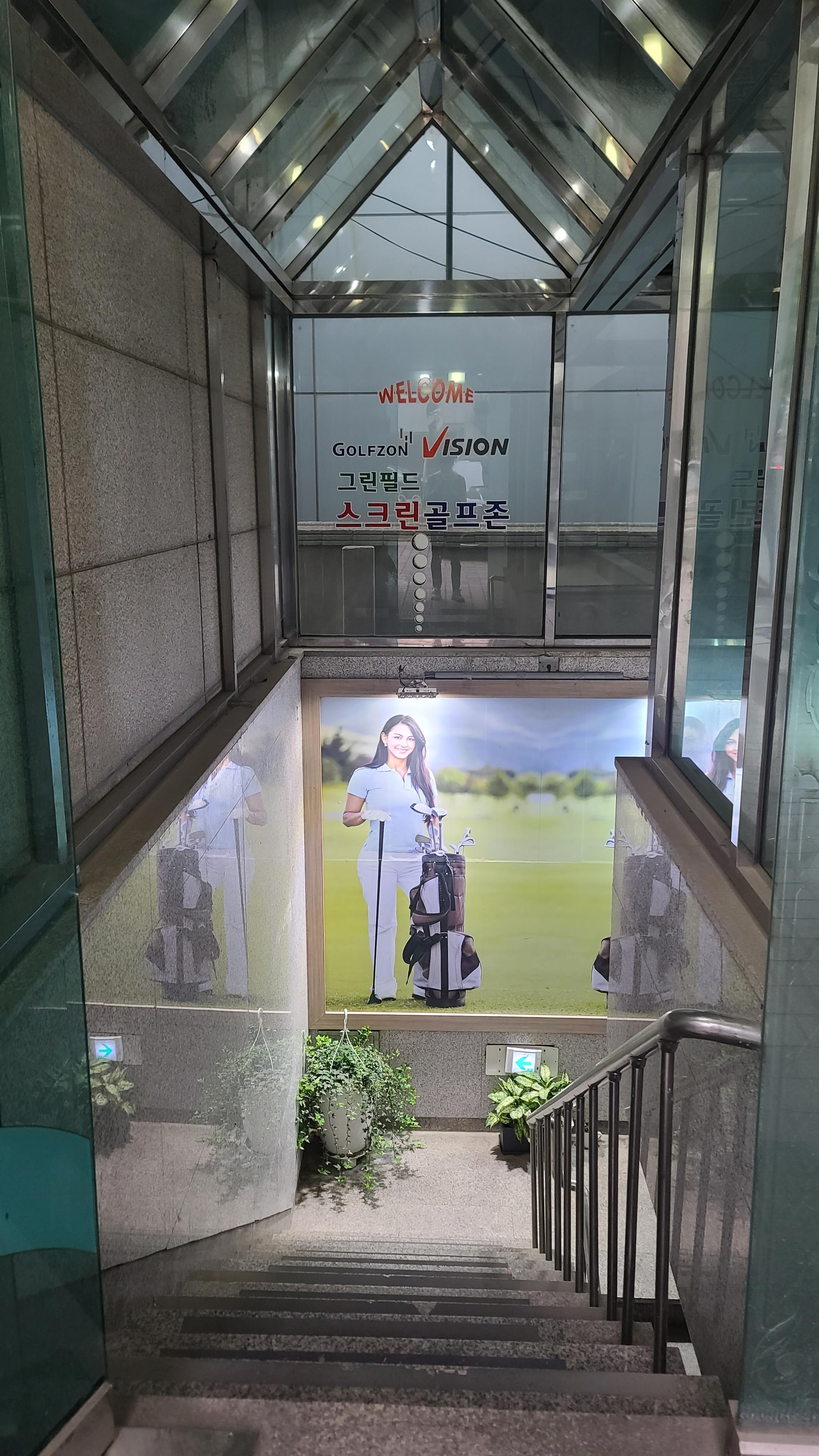 도착해서 건물관리인분께 발렛을 맡기고 입구로 들어가봅니다. 입구를 보니 투비전플러스로 바꾼지 얼마안되서인지 입구에 골프존 비전플러스마크가 보입니다. 물론 알아보고 예약하고 오기 때문에 큰 영향은 없어보이지만 이왕이면 바꿔놓는게 좋지 않을까 생각해보게 됩니다.