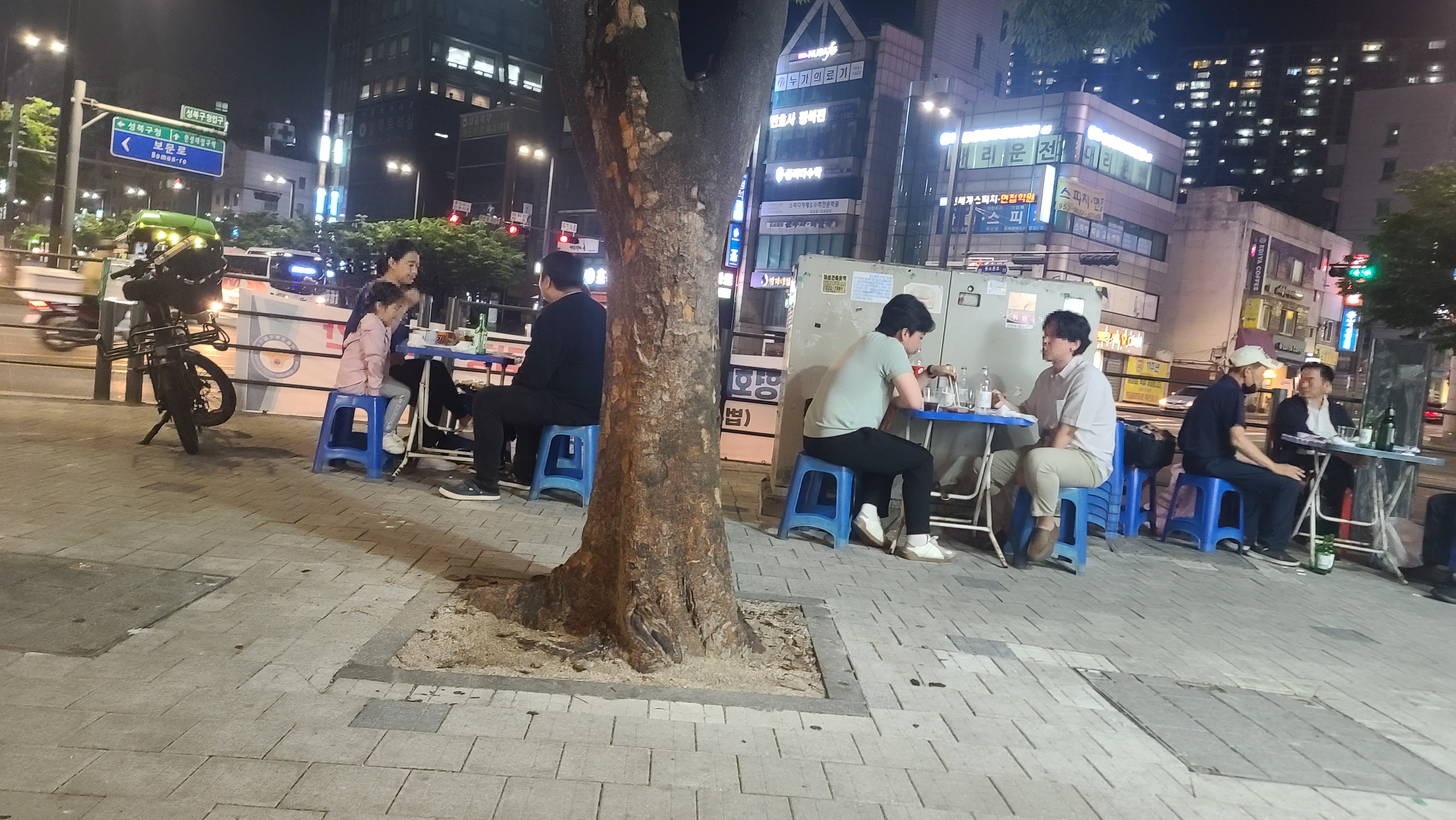 성신여대근처를 걸어가다 성북구청앞 교차로에서 포장마차처럼 테이블이 도로위에 깔려있는 모습을 보게 됩니다. 자세히 살펴보니 직장인들 근처 여대생들 그리고 가족단위 까지 다양한 손님들이 있는것이 보이며 늦은시간인데도 자리가 꽉차있는 것으로 보아 인기가 많은 곳임을 알게 됩니다. 이렇게 인기가 많은곳이라니 호기심이 생겨 발걸음을 멈추고 가게를 좀더 살펴보기로 합니다.