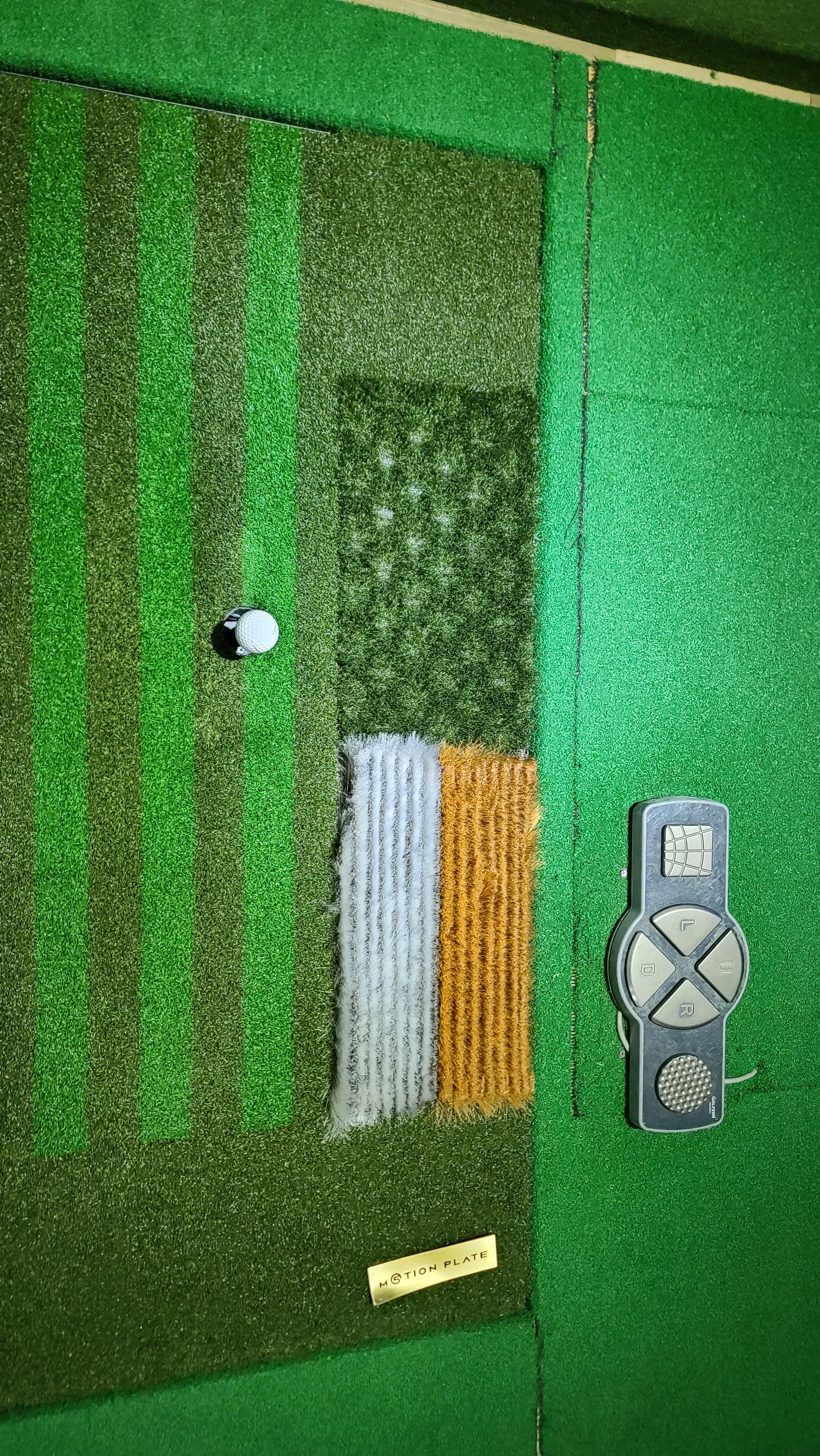 스크린을 치기전 장비를 좀더 자세히 살펴봅니다. 키오스크와 같은 센서일체형의 골프존 시스템이 눈에 들어오고 비교적 좋은 컨디션을 보여줍니다. 바닥매트는 러프는 최신식인데 벙커와 조작 키패드가 구형이어서 주변을 살펴보니 최신벙커매트는 키오스크 옆에 놓여 있는게 보입니다. 아마 조금 더 사용하기 위해서 일부러 바꿔놓으신게 아닌지 하는 생각을 하게 됩니다.