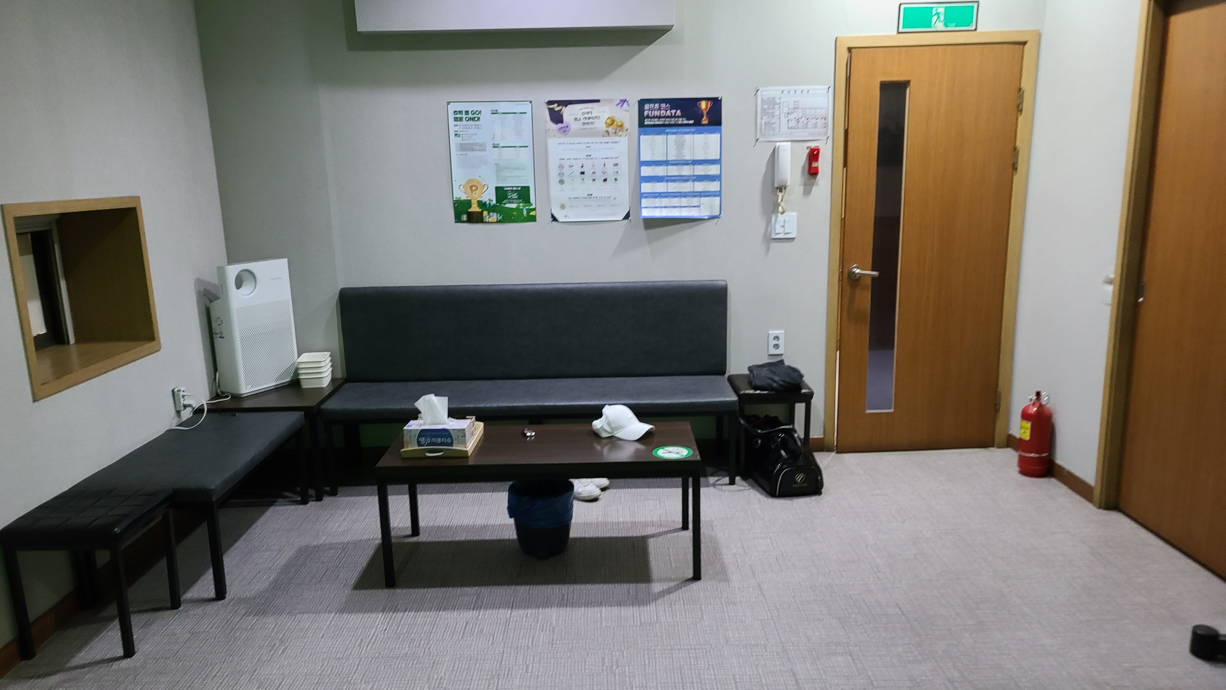 좌석은 4명이서 플레이하기엔 조금 아담한 사이즈로 느껴지지만 방마다 통하는 문이 설치되어 있어 포썸이나 네트워크플레이를 하기에는 괜찮은 구조라고 보여지며 투비전플러스로 바꾼지는 그리 오래되지는 않은 골프장이라는 것을 유추하게 됩니다.