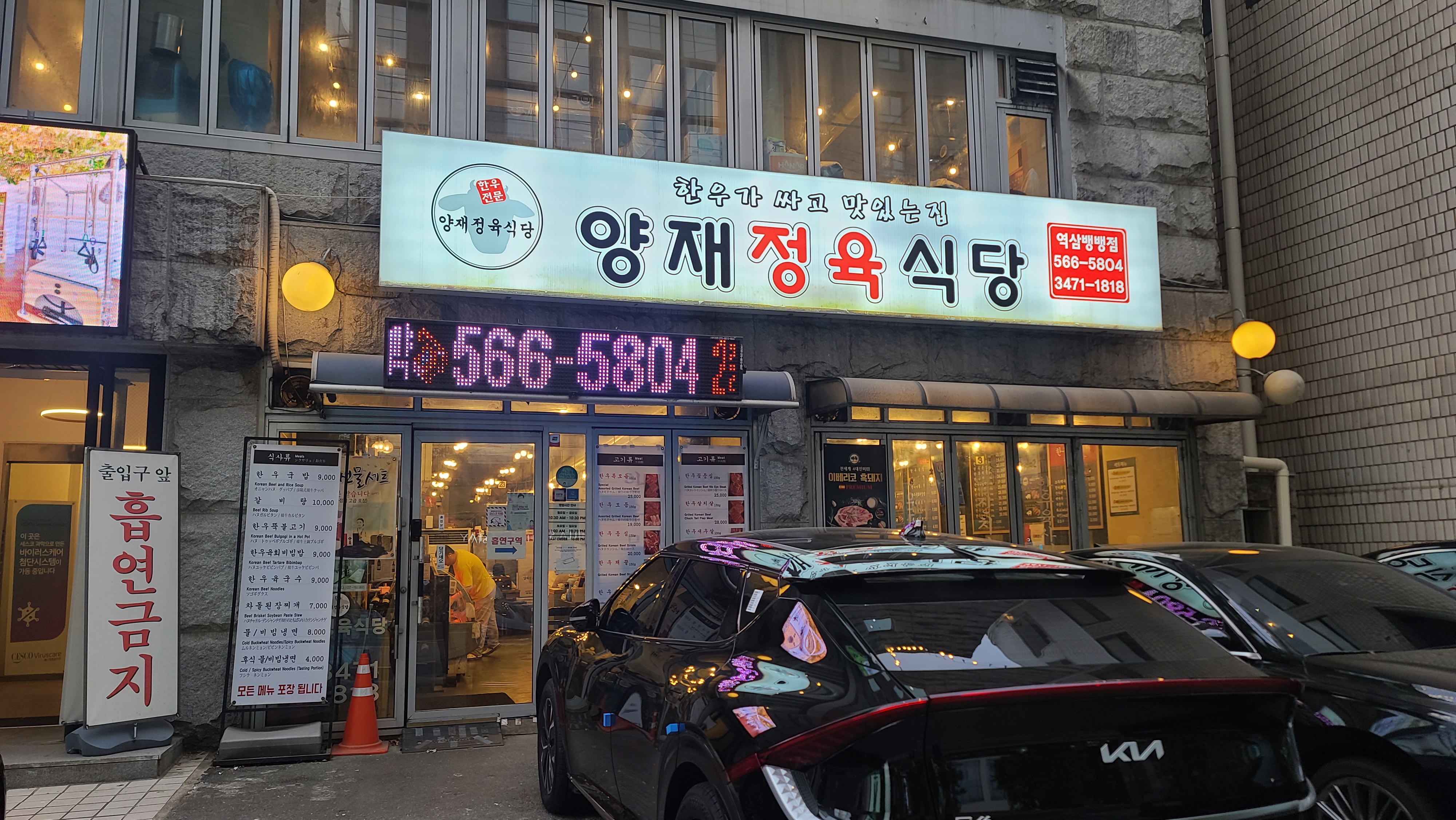 양재 뱅뱅사거리 근처 회식하기 좋은 고깃집을 찾다가 양재정육식당이 넓고 주차하기도 편하다는 후기들이 많아서 회식장소로 정하고 방문을 해보기로 합니다. 도착해서 입구를 보니 2층구조로 넓어서 정말 회식하기 좋은 사이즈이며 주차도 가게 앞에 대거나 뒤쪽에 공용주차장으로 안내를 해주셔서 일단 접근성과 시설에서 합격점을 받게 됩니다.
