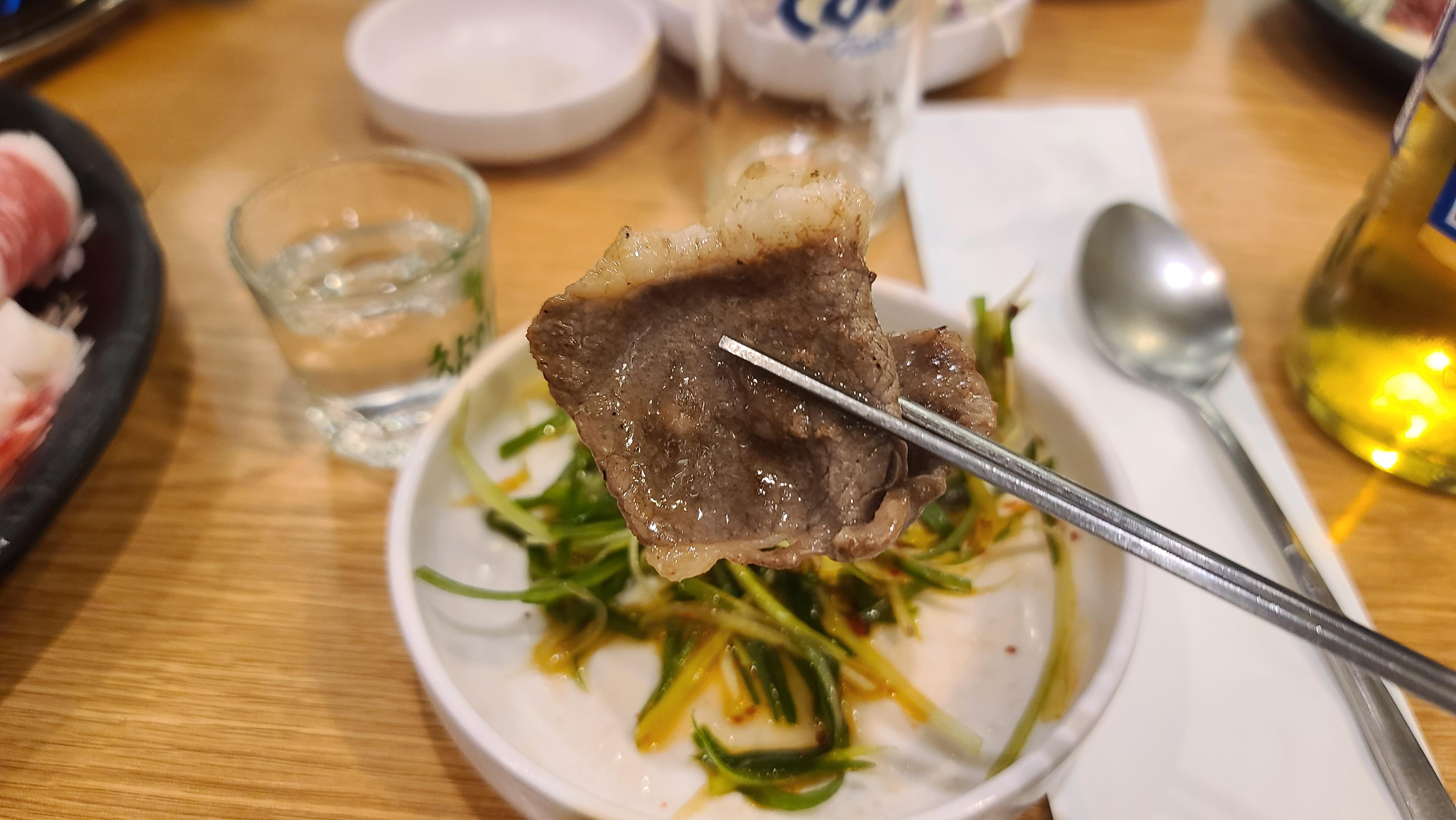 시간이 지날수록 분위기는 점점 더 올라가고 소고기를 많이 먹어도 다른곳의 반값수준이니 걱정없이 소고기를 계속해서 주문하게 됩니다. 등심을 올려서 스테이크와 같이 통으로 즐겨도 보고 점점 더 식욕이 불을 뿜는것을 느낄 수가 있습니다.