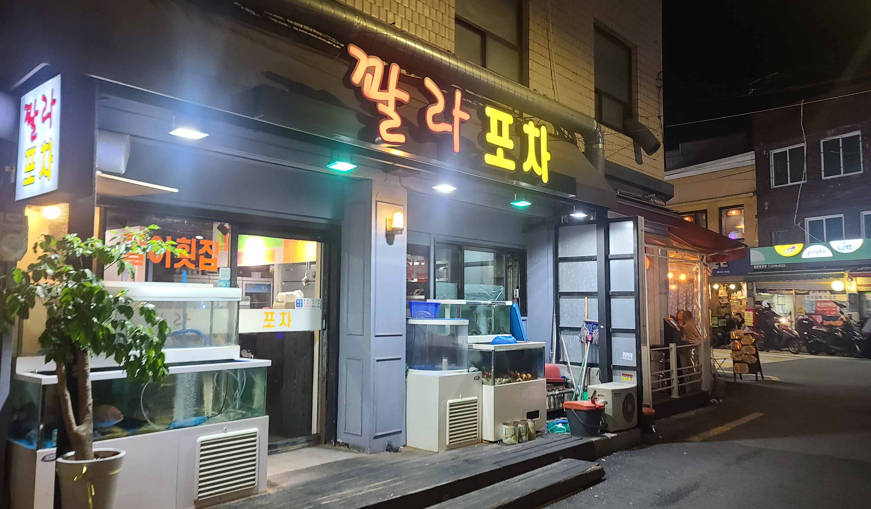 신당역 부근 떡볶이 골목에서 조금더 올라와서 술집 번화가거리 무엇을 먹을까 고민해보다 마음에 드는 가게이름을 발견해서 잠시 살펴보게 됩니다. 꽐라포차 무언가 상황에 맞는것 같기도 하고 술이 잘 들어갈것 같은 기분에 들어가보고 싶다는 욕망을 불러일으키는 그런 가게이름입니다.