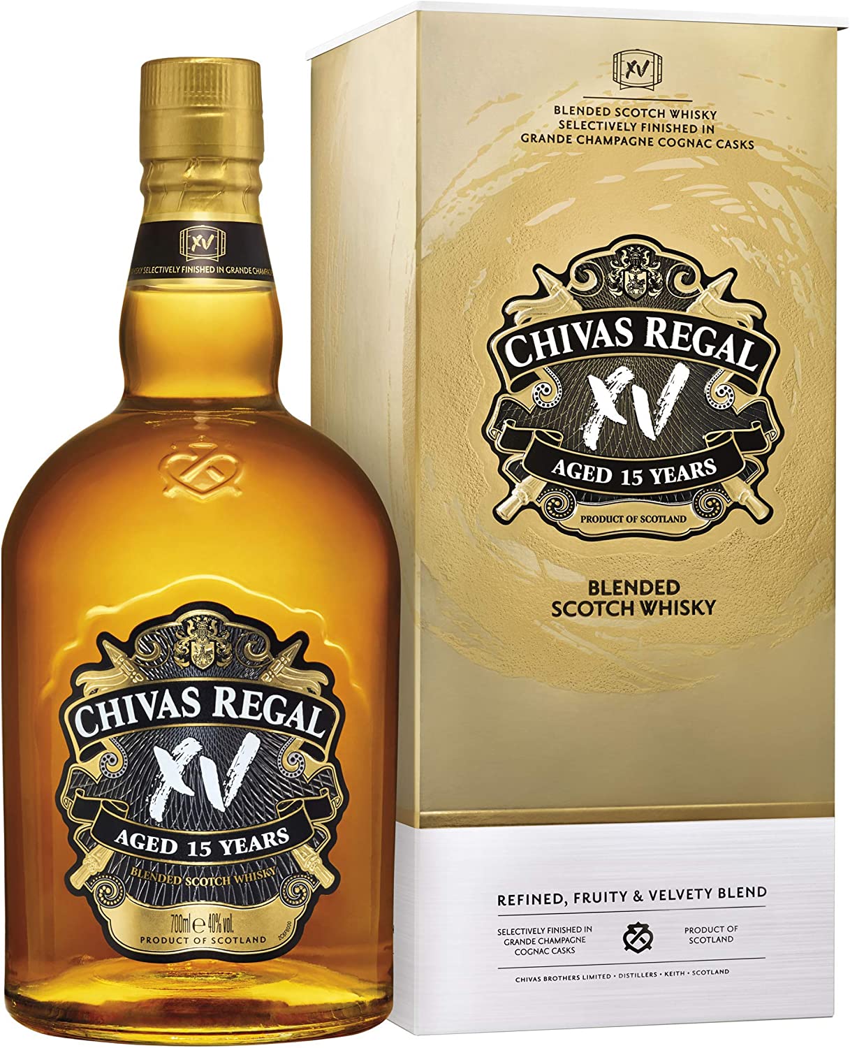 시바스리갈XV는 2018년에 라인업을 강화하기 위하여 출시된 제품으로서 15년 숙성 위스키만을 모아 블렌딩한 제품입니다. 위스키가 숙성되는 오크통은 Grande Champagne에서 생산된 오드비만으로 만들어진 꼬냑을 숙성한 통을 사용하여 매우 풍부한 향과 과일향을 느낄 수 가 있습니다.