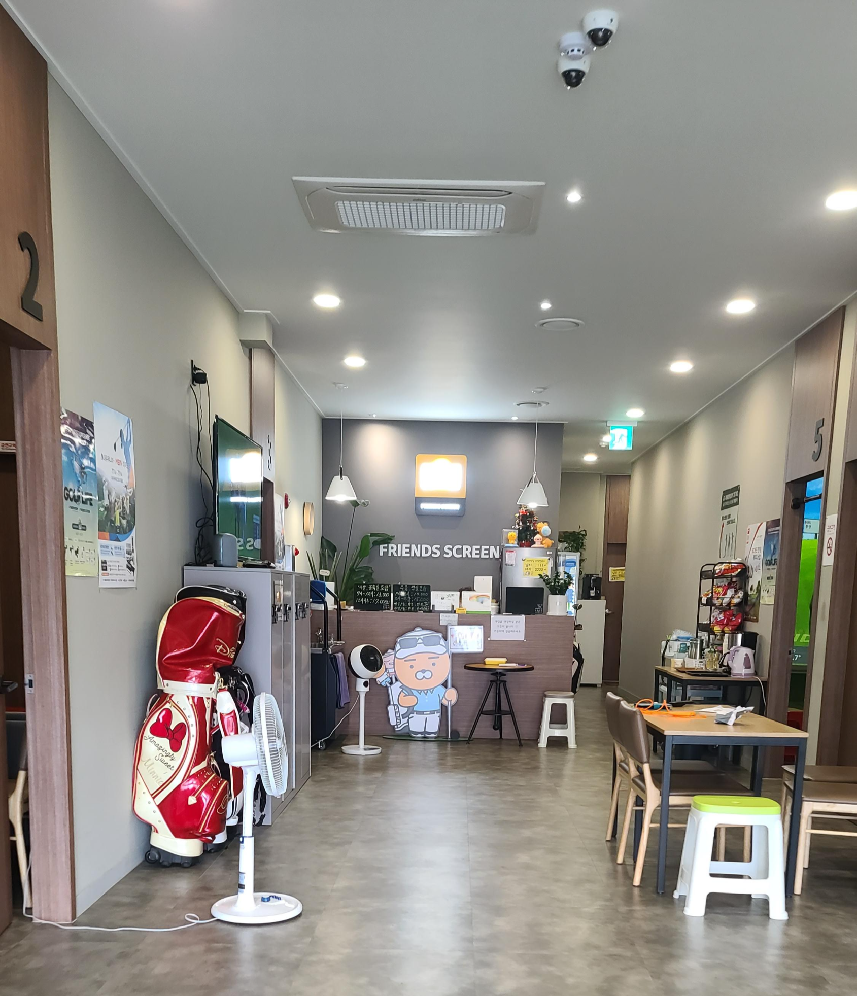 매장안으로 들어가니 카카오의 마스코트 라이언 전무님이 반갑게 맞이해주시고 가운데 카운터 복도 좌우측으로 방이 보입니다. 비교적 아담한 사이즈의 스크린 골프장으로 보이지만 방은 비교적 넓은 컨디션을 보여주며 손님들도 많이 차있는 모습에 골프 패션타운이나 주변 포천힐스나 참밸리, 레이크우드 등 라운딩을 갔다가 뒤풀이를 하는게 아닐까 하는 생각이 들게 됩니다.