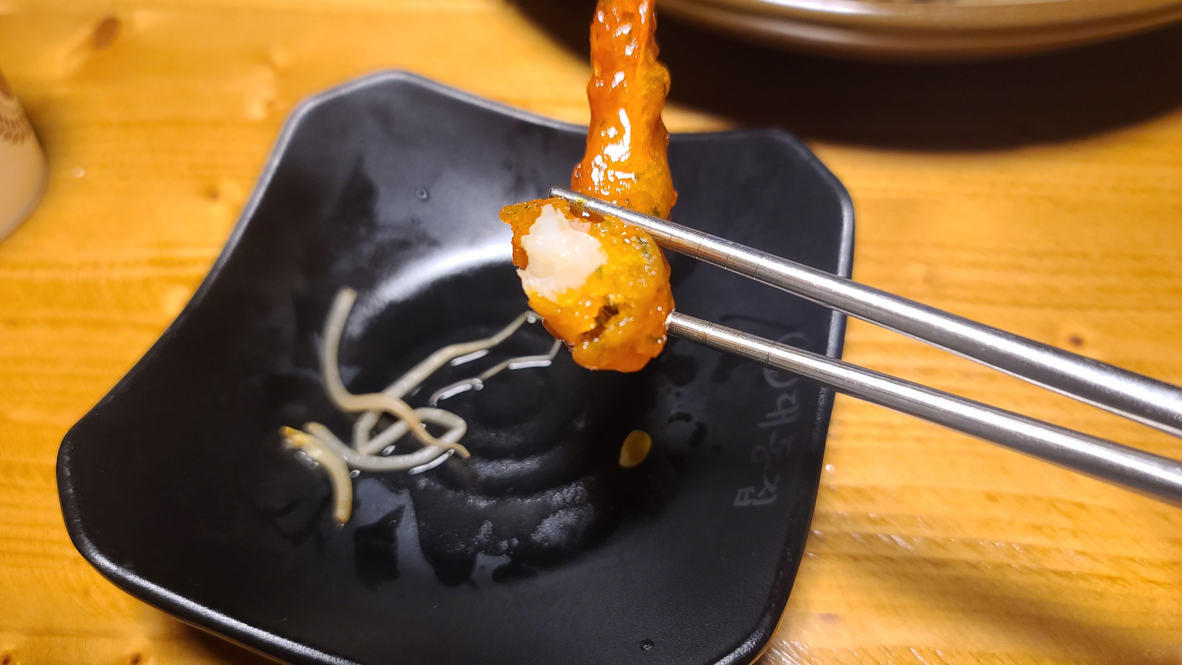 안주맛으로 돌아와서 깐쇼새우 한입을 먹으니 상당히 맛있지만 달게 느껴집니다. 아무래도 젊은층이 많이 오는 가게이다보니 전체적으로 맛을 달게 한 것을 느낄 수가 있으며 중화요리 보다는 분식집의 매우 단맛의 새우튀김의 맛을 생각하면 됩니다. 전체적으로 안주는 단맛이 주로 잡혀있으며 때문에 상대적으로 맛있게 느껴지지만 많이 들어가지는 않게 되는 구성입니다.