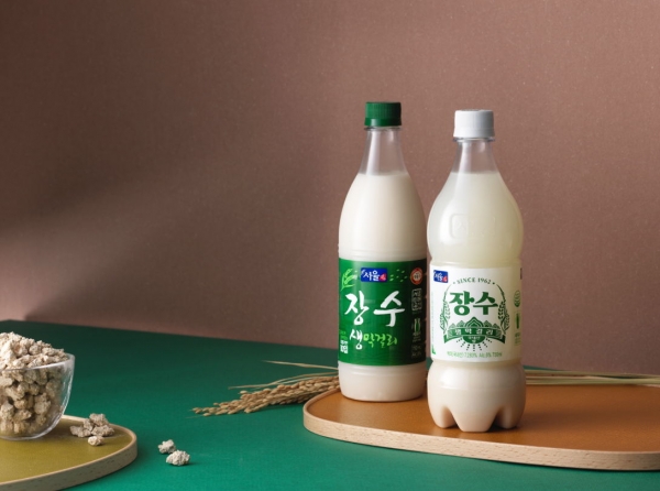 1962년 서울탁주제조협회에서 제조를 시작한 장수막걸리 제품은 여러차례의 제품 리뉴얼을 거쳐 현재의 디자인을 갖추고 있습니다. 전통적으로 초록색의 병이 장수막걸리를 상징하는 색이었으나 재활용 등에 대한 이슈로 투명한 색의 병으로 최근 리뉴얼 한 것이 특징이며 초록색의 아이덴티티를 지키기 위하여 라벨을 초록색으로 바꾼것이 눈에 띄는 변화이기도 합니다.