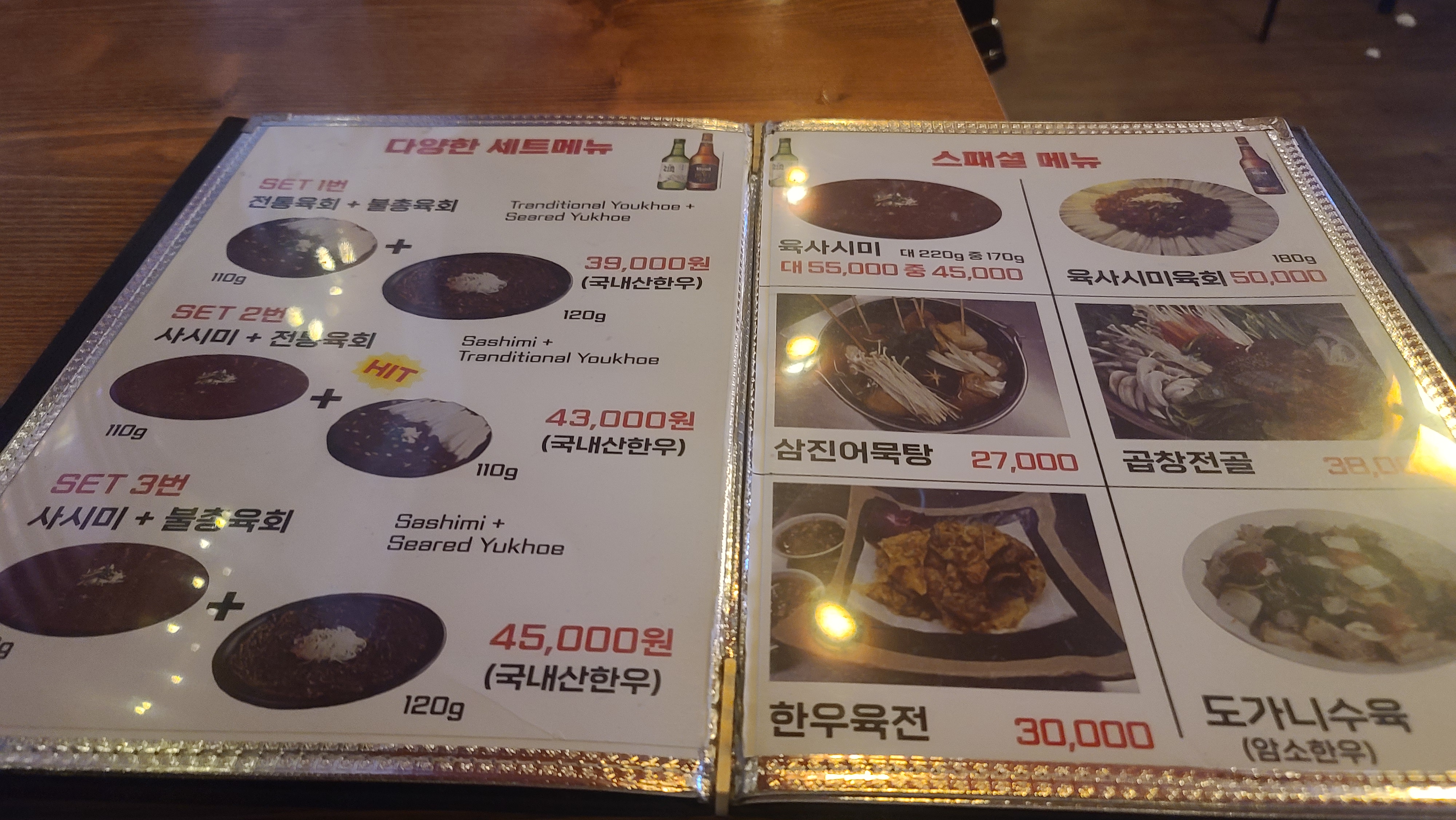 주문을 하고 기다리면서 가게 분위기를 살펴보니 늦은시간인데도 사람들이 상당히 많이 보이고 북적이는 모습이 눈에 들어옵니다. 메뉴가격을 보면 한우를 사용하고 저렴한 편이 아닌데 직장인들외에도 젊은 연령대의 사람들이 많이 보이는 것을 보면 무언가 특별한 것이 있겠다는 것을 예상하며 살펴보기로 합니다.