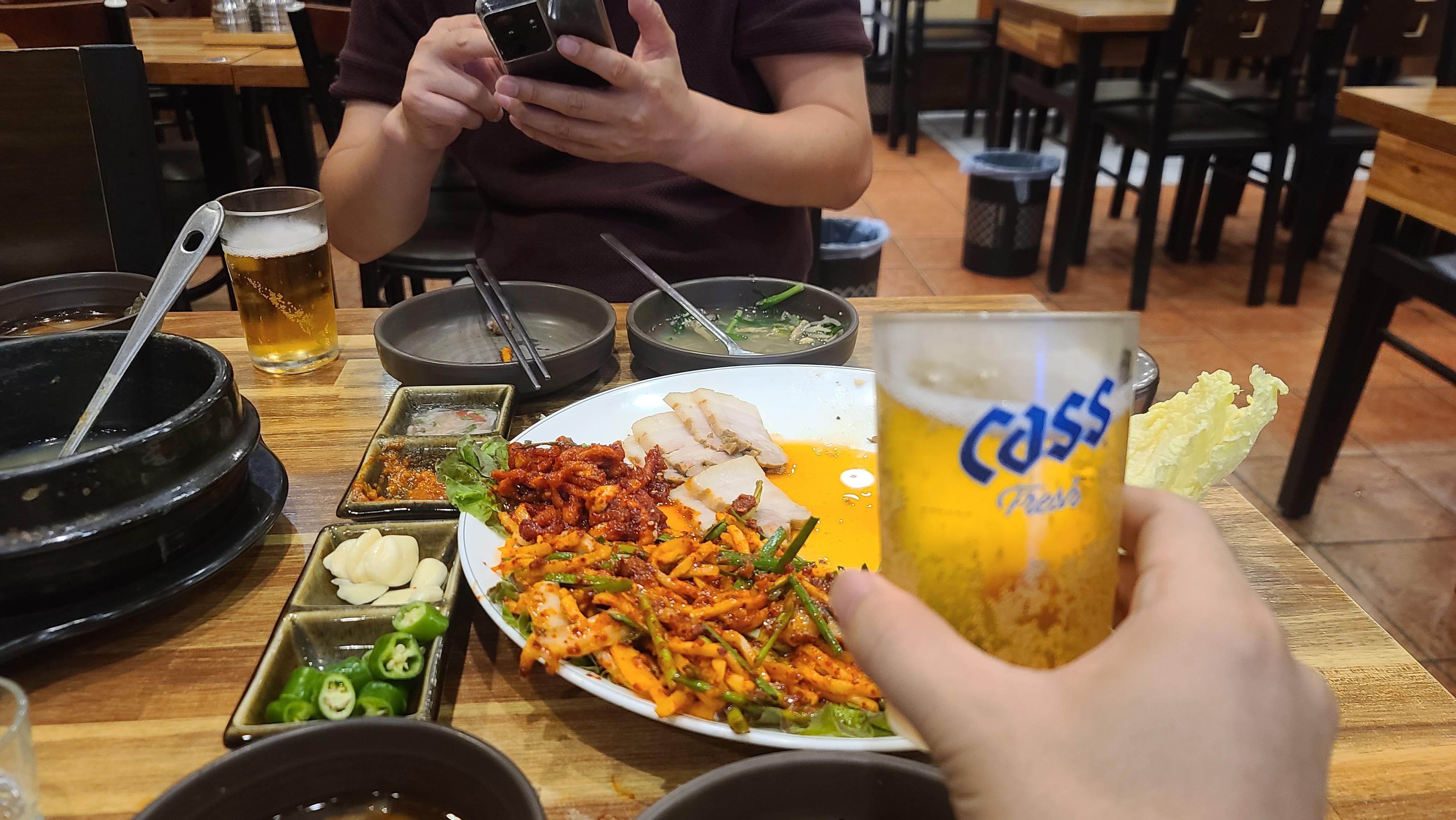 따뜻한 굴탕으로 속을 달래줬으니 마무리로 맥주를 한잔하면서 시원하게 온탕과 냉탕의 변화를 즐겨보며 좋은 술자리를 마무리합니다.