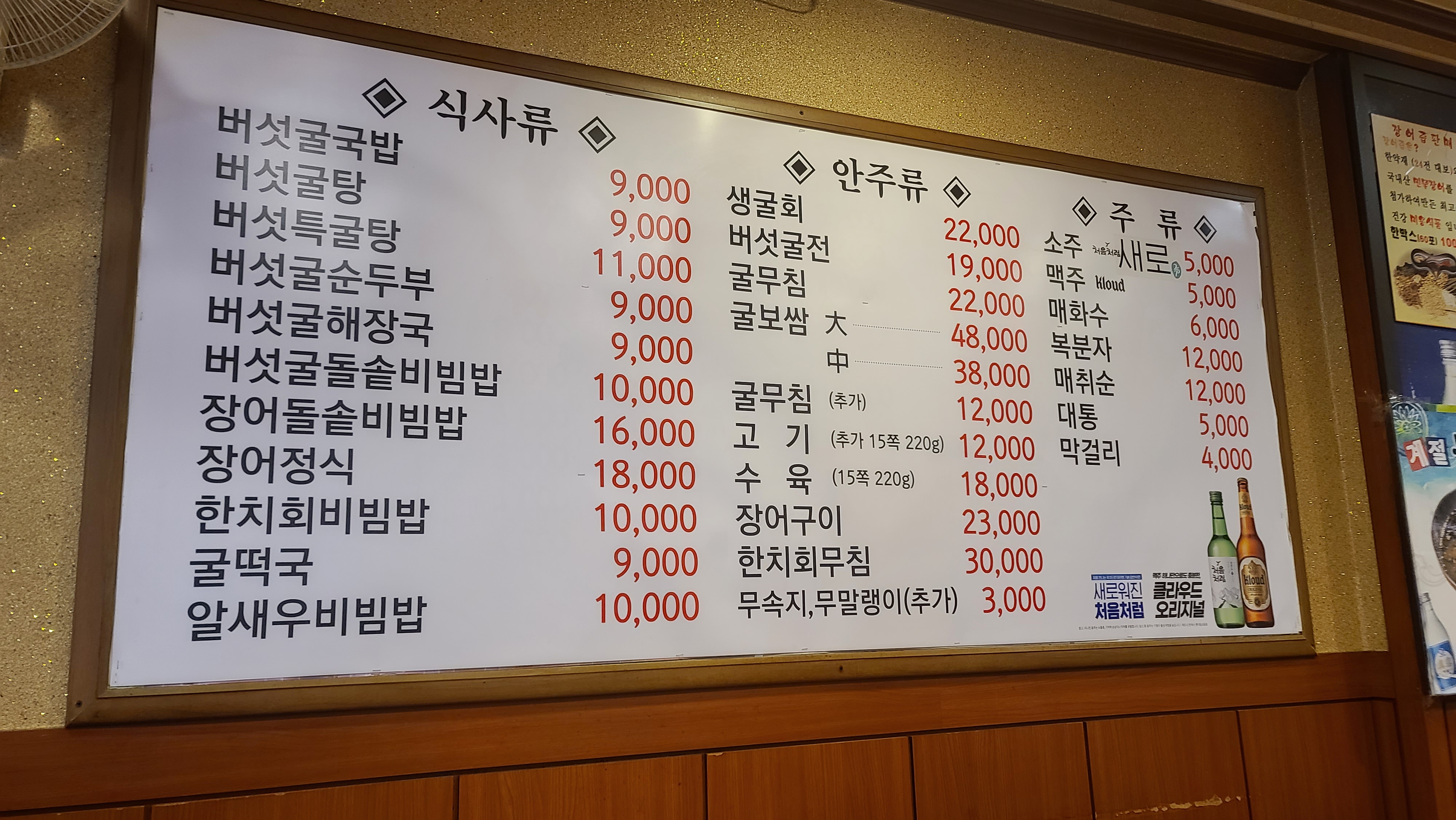 굴예찬 겨울철 최고의 장소로 자리가 없어서 못먹는 맛집이지만 여름에는 주의가 필요하며 굴보쌈 대신 오징어무침을 주므로 색다른 보쌈이 먹고 싶을때 이용할 만 한 곳입니다.